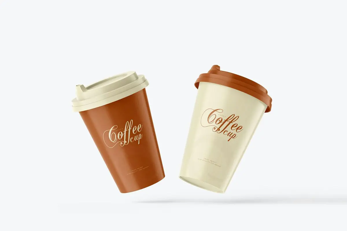Stylish Coffee Cup PSD Mockups 5款时尚外卖咖啡杯模型杯身包装展示设计贴图psd样机素材