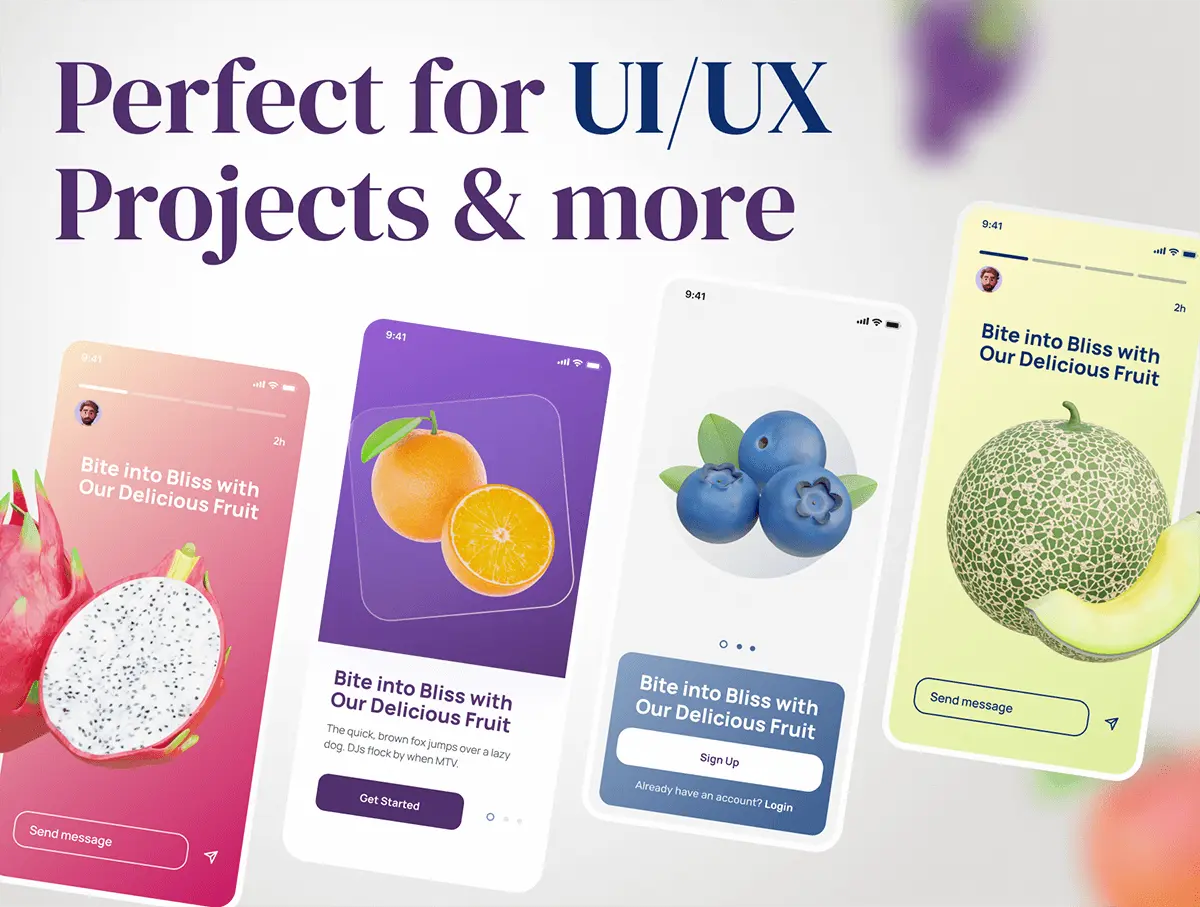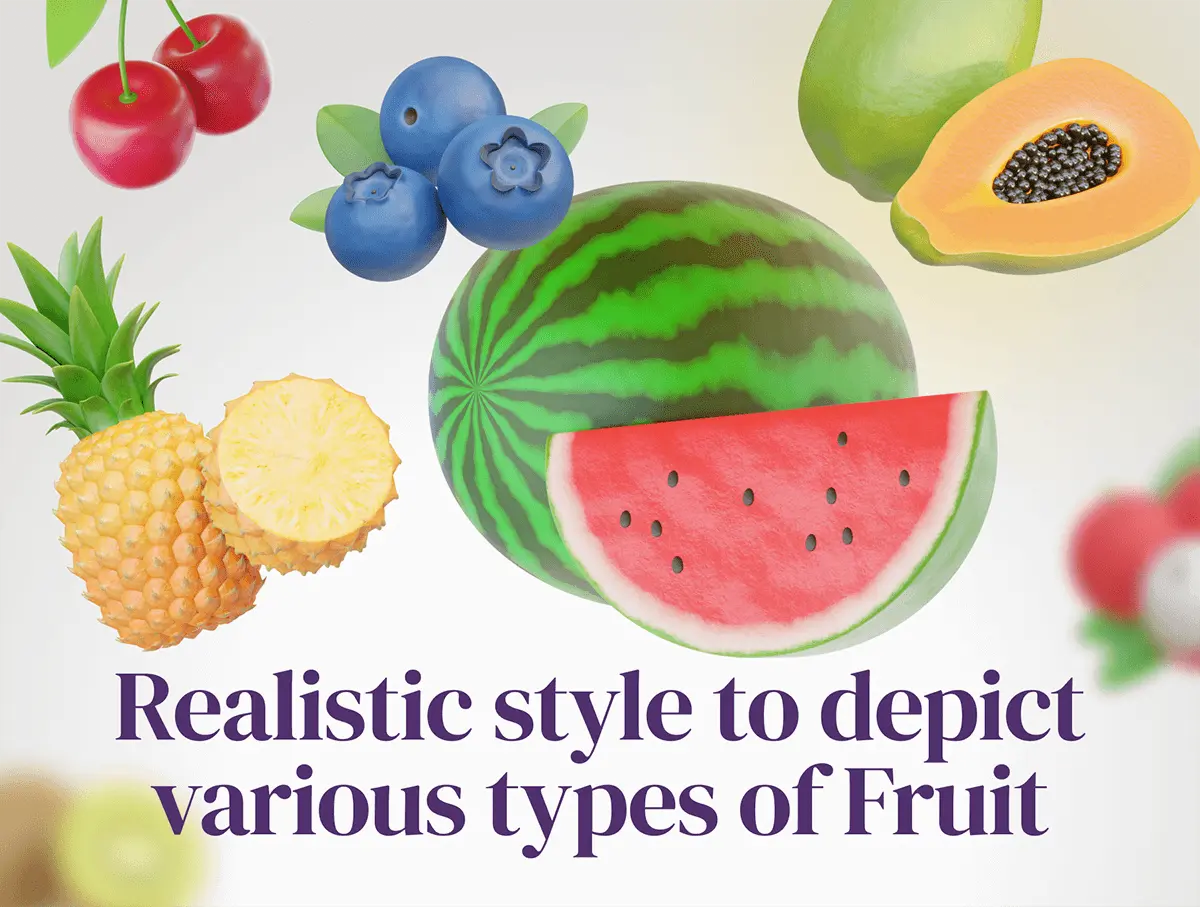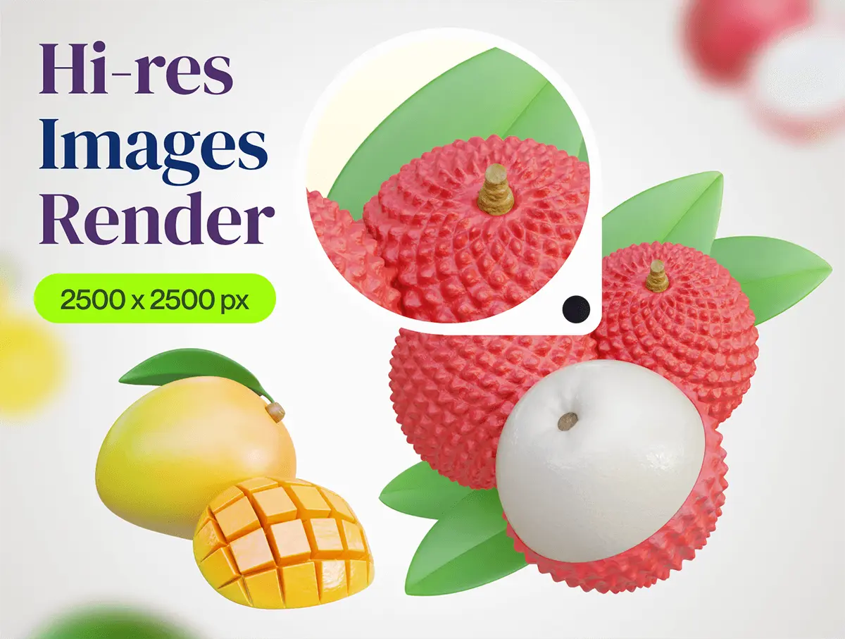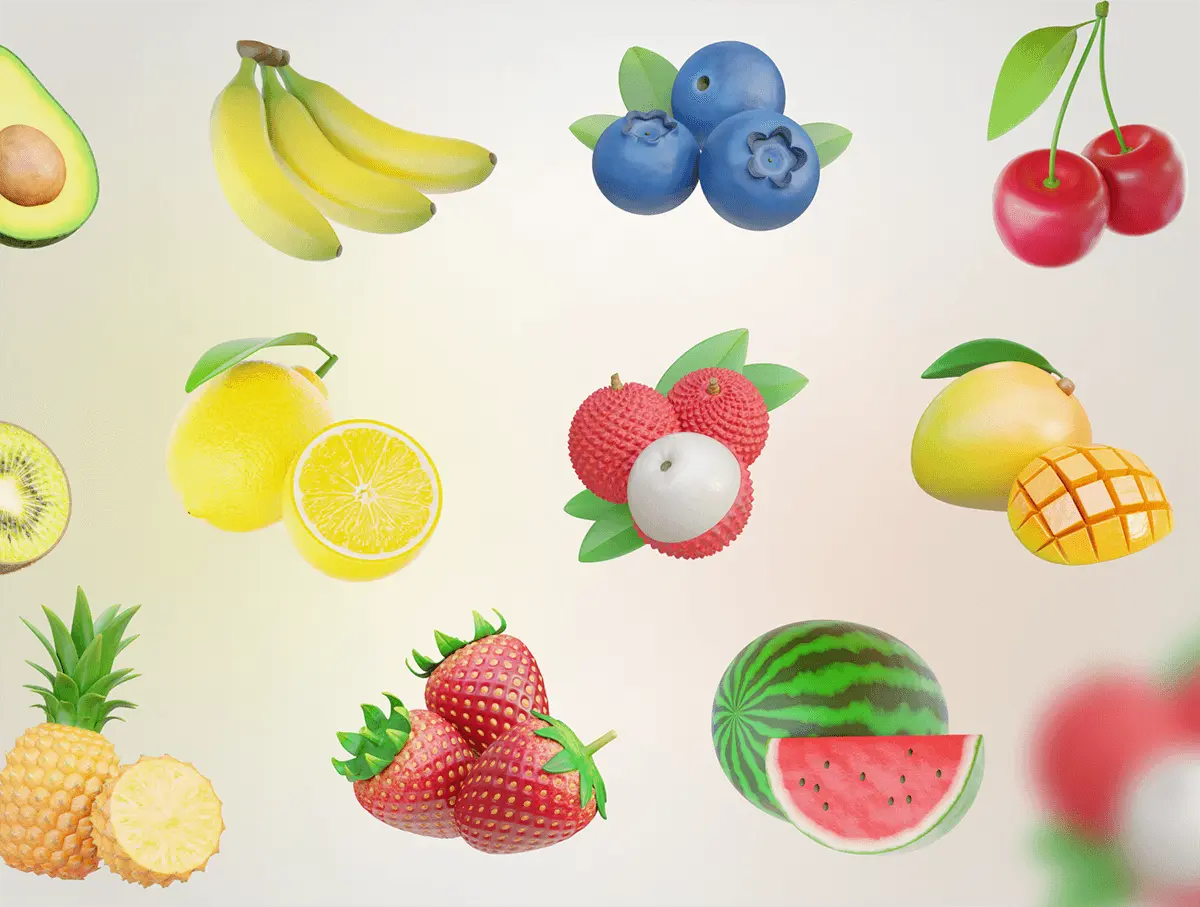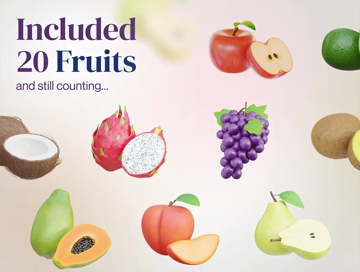 Fruity – Fruit 3D Icon Set 20款3D热带瓜果荔枝芒果葡萄苹果香蕉樱桃水果webp免抠图标素材