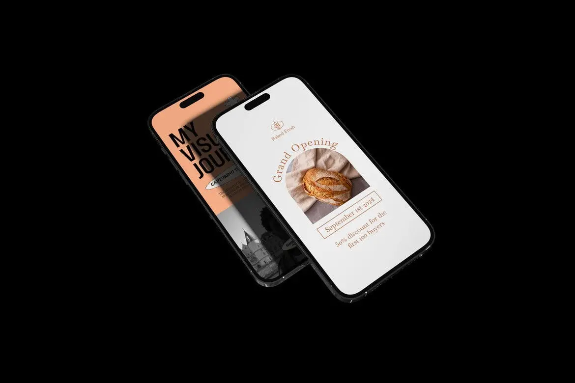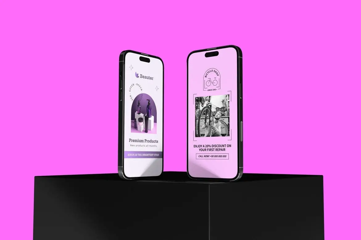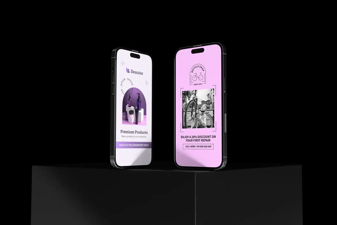 Multiple iPhone Display Mockup 3款苹果手机模型屏幕展示设计智能对象贴图psd样机素材