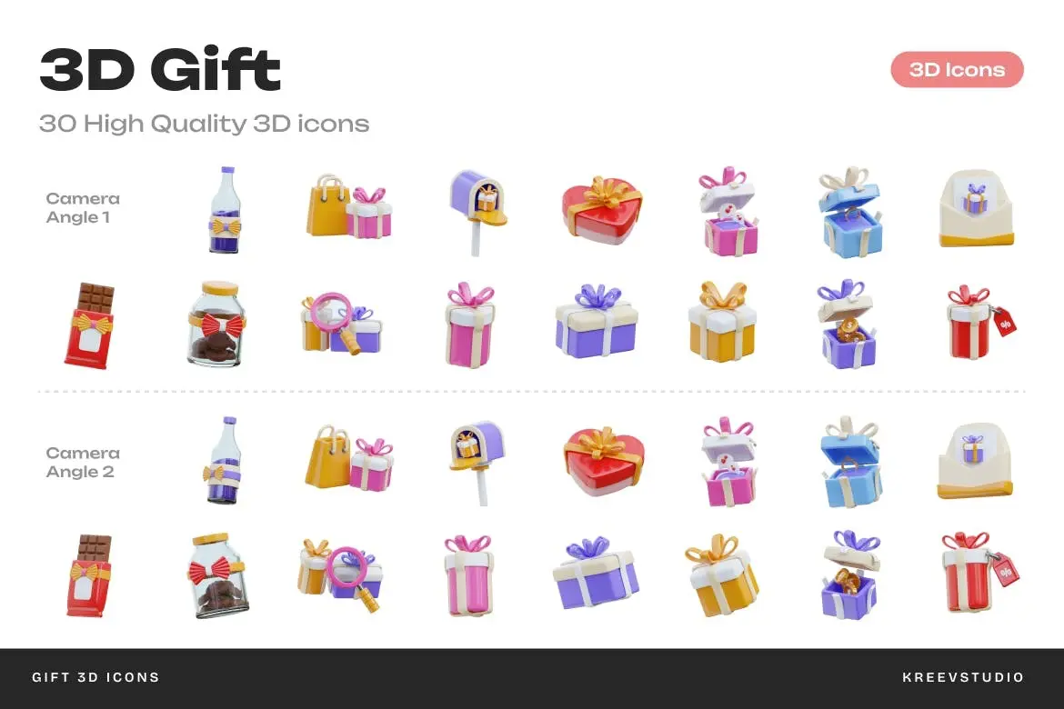 3D Gift 15款3D立体礼物包装盒礼品盒icon图标PNG插画插图Blender模型