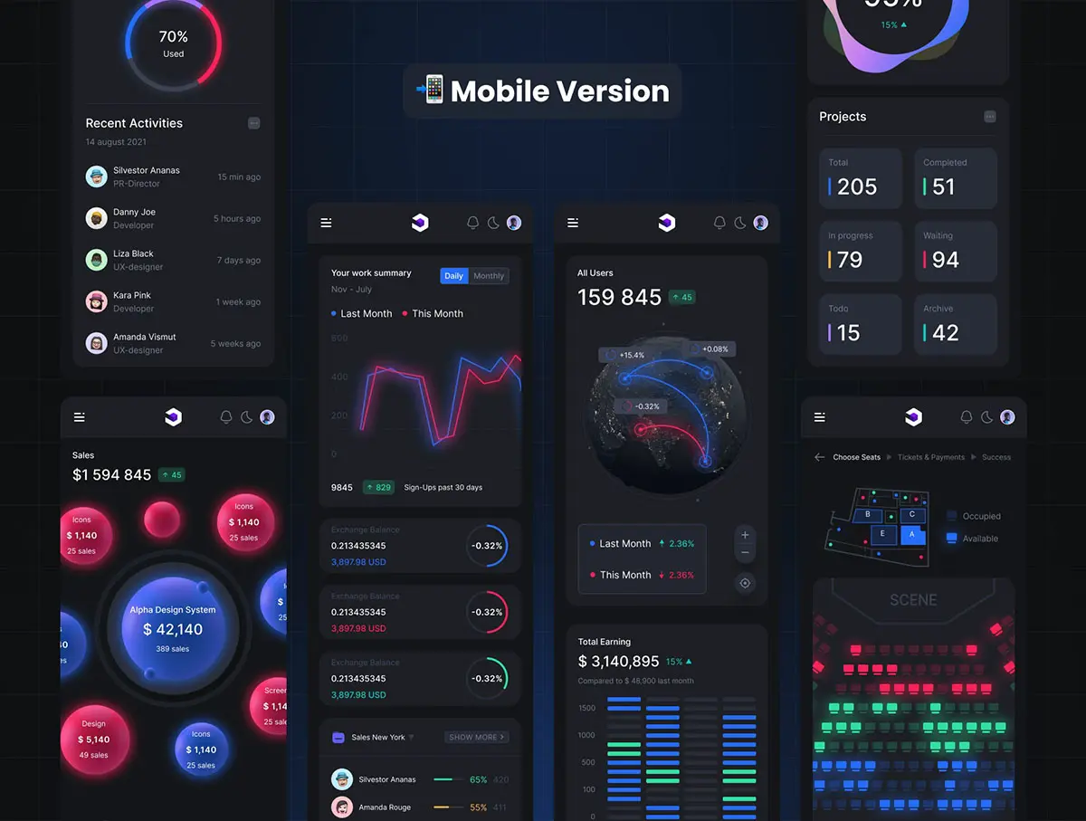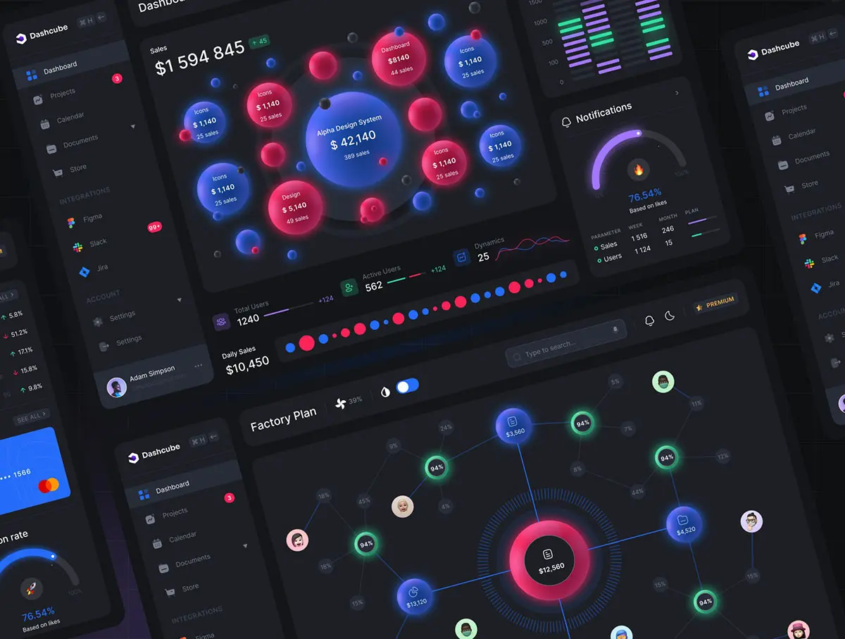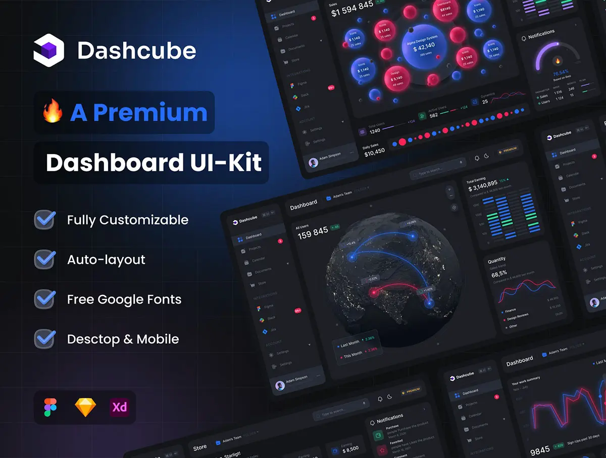 Dashcube – Dashboard Ui Kit 星际太空站数据可视化响应式网页设计sketch模板