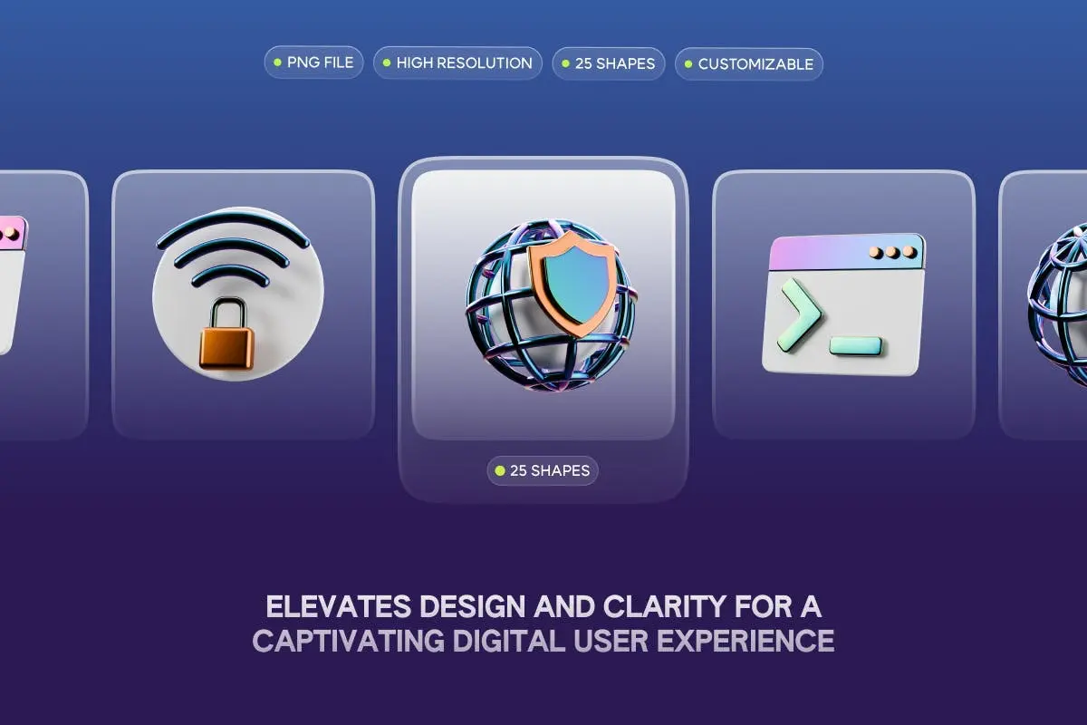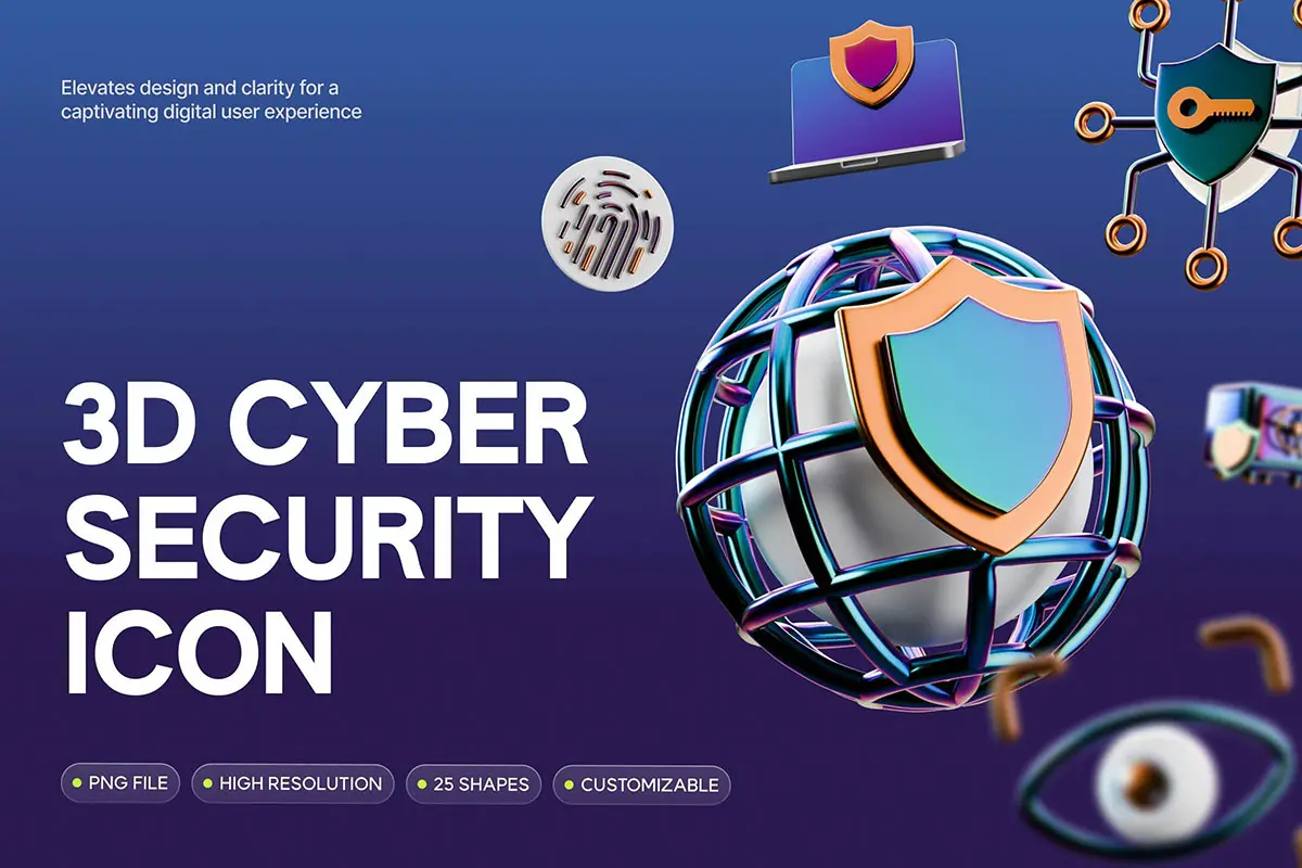 3D Cyber Security Icons 25款3D立体科技网络安全电子数码app应用icon图标webp免抠图片素材