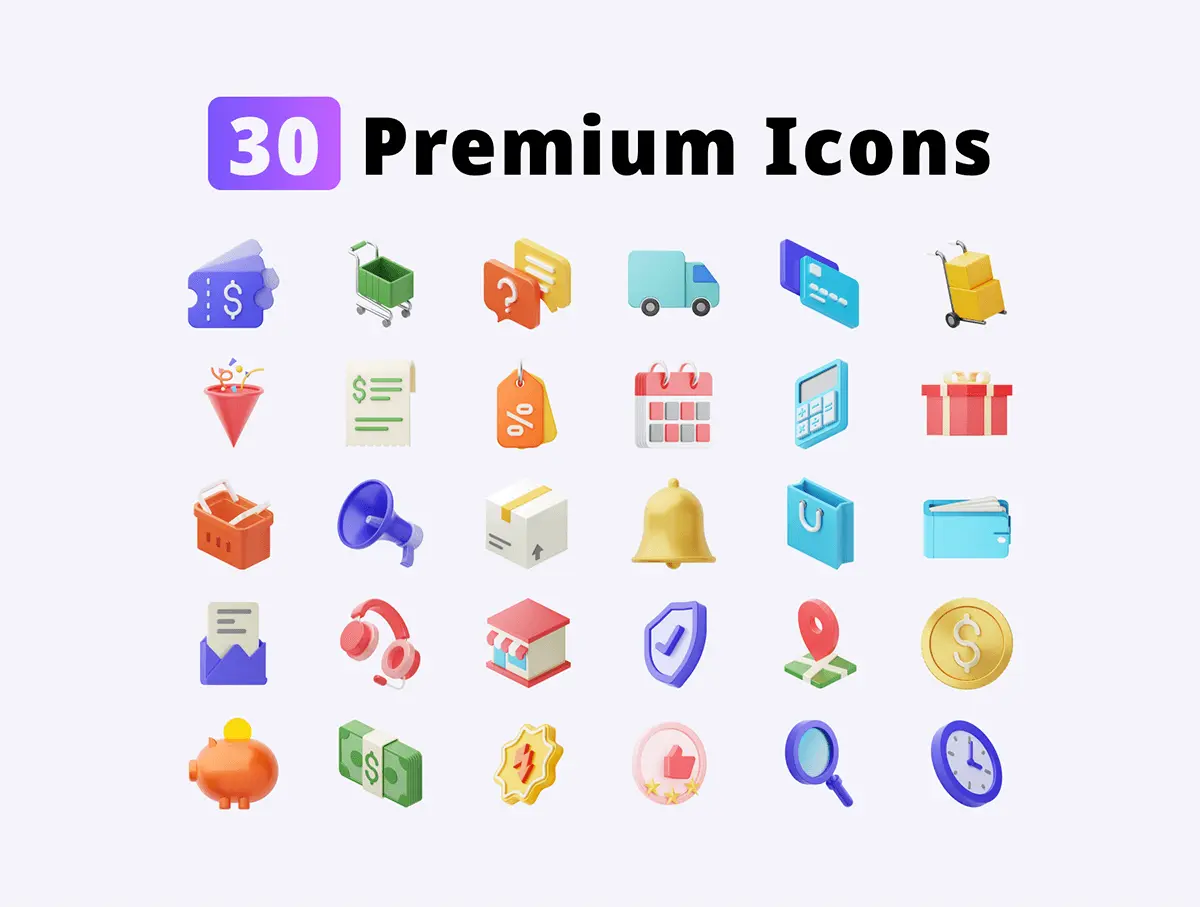 30 E-commerce 3D icon set 120款3D趣味卡通电商金融购物插图插画icon图标webp免抠图片素材