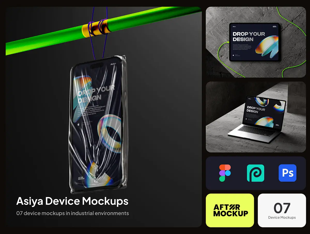 Asiya Device Mockups 7款极简水泥工业iPhone手机iPad平板笔记本电脑ps样机素材效果图