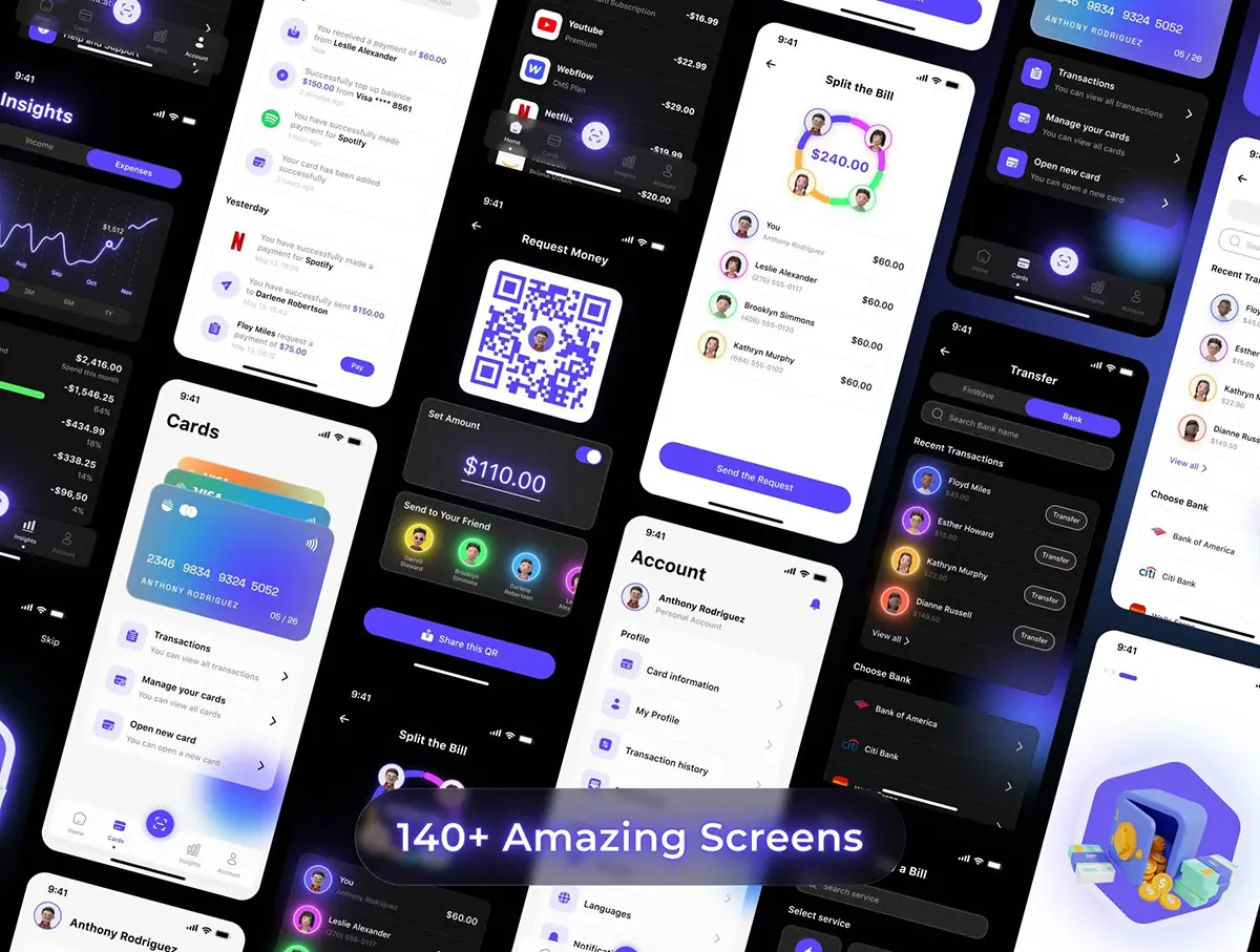 FinWave – Fintech App UI Kit 时尚未来科技金融理财移动支付数字钱包App应用ui界面fig设计模板