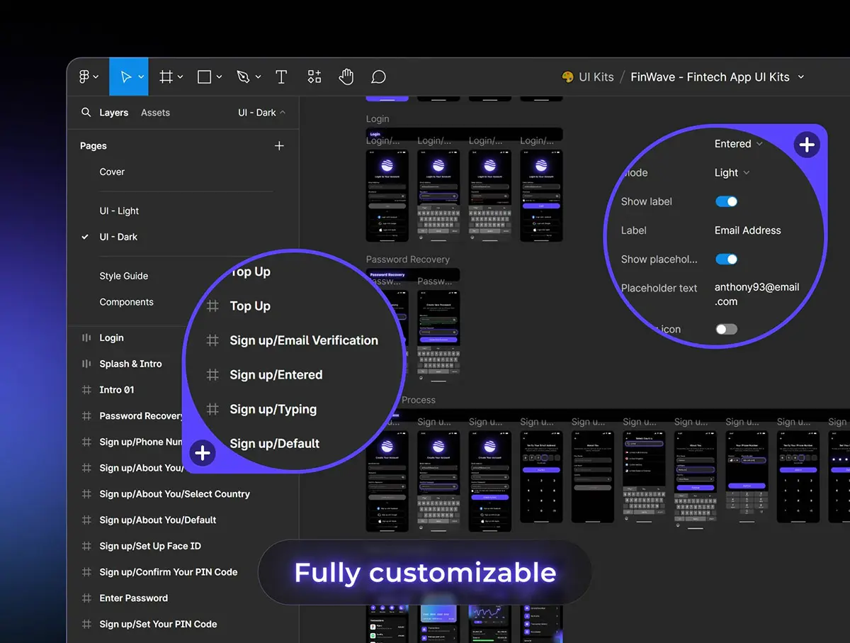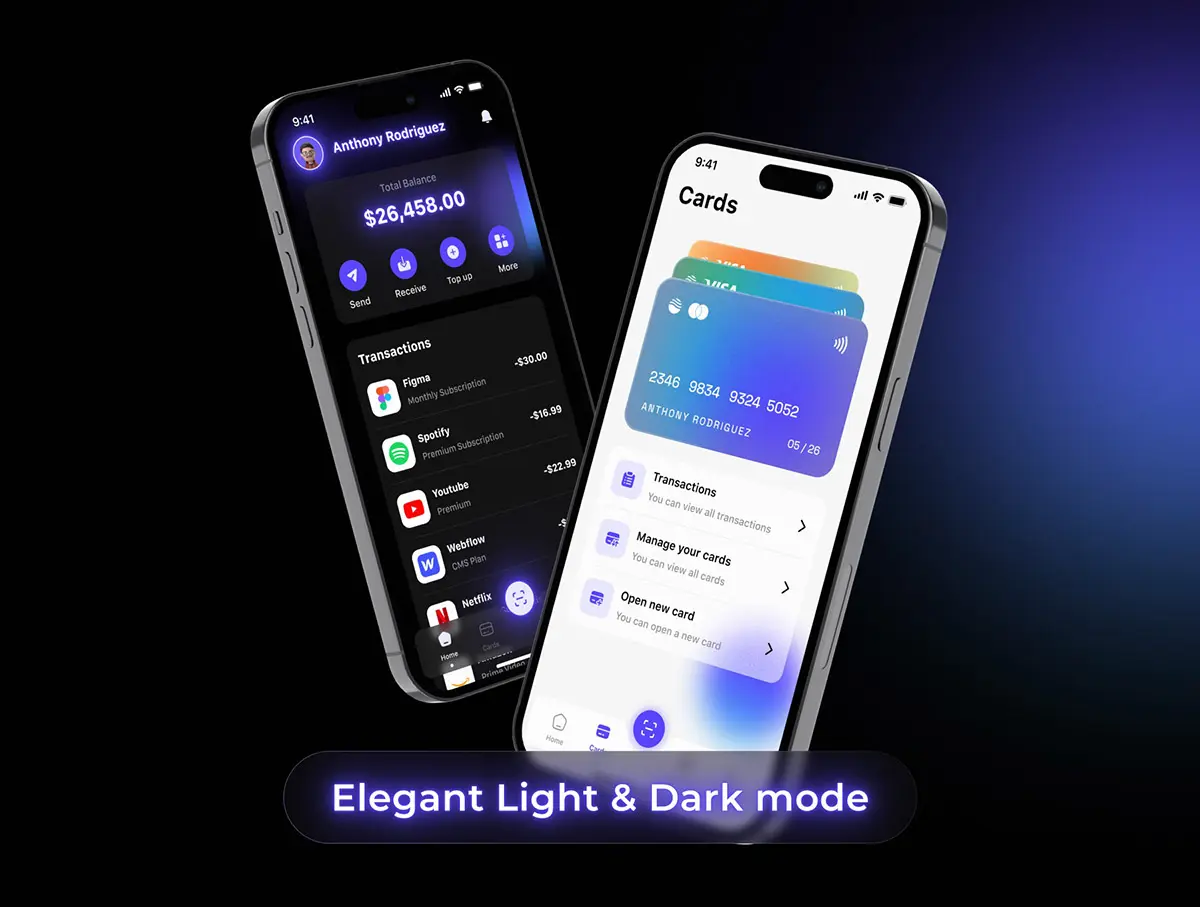 FinWave – Fintech App UI Kit 时尚未来科技金融理财移动支付数字钱包App应用ui界面fig设计模板