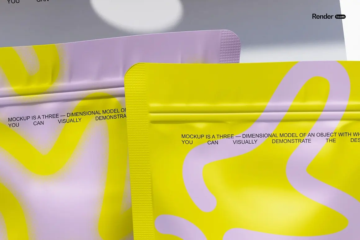 Matte Stand-Up Pouch Mockup Set 6款哑光铝箔零食自立袋自封袋产品包装设计ps样机素材展示效果图