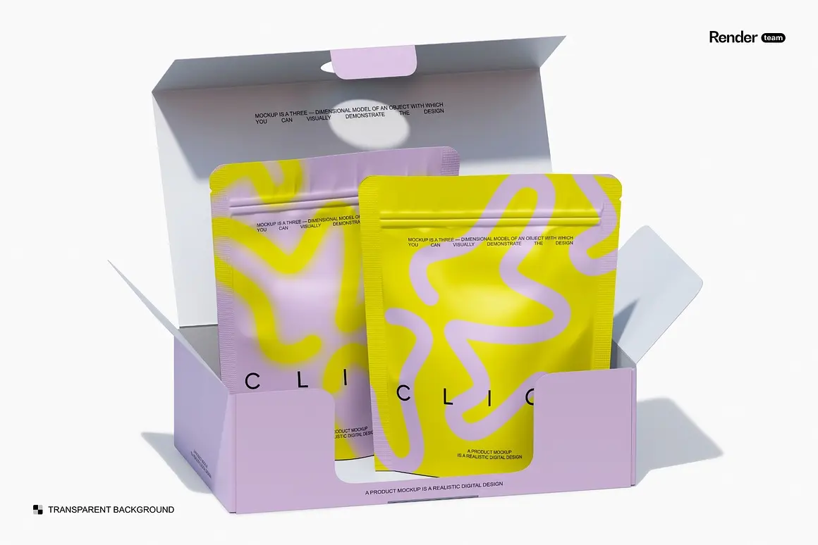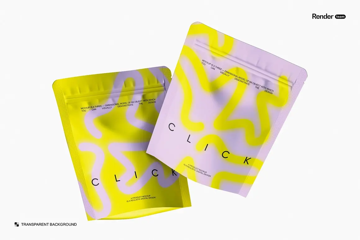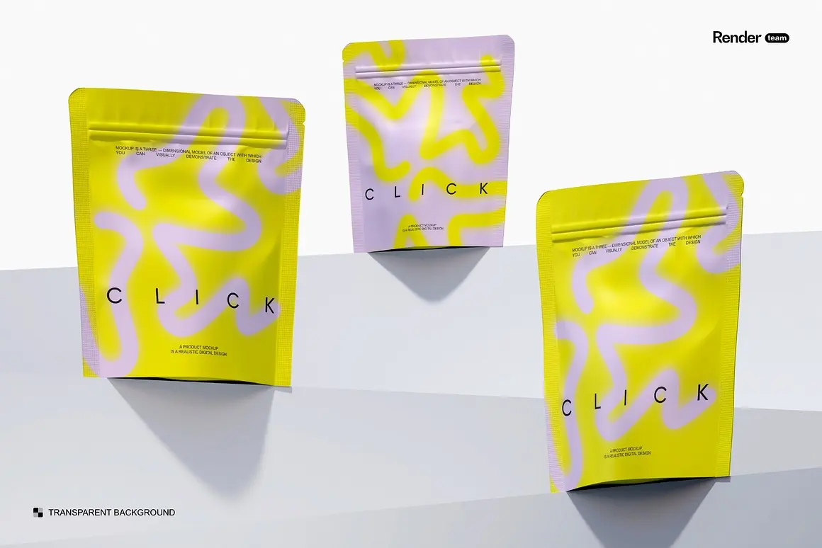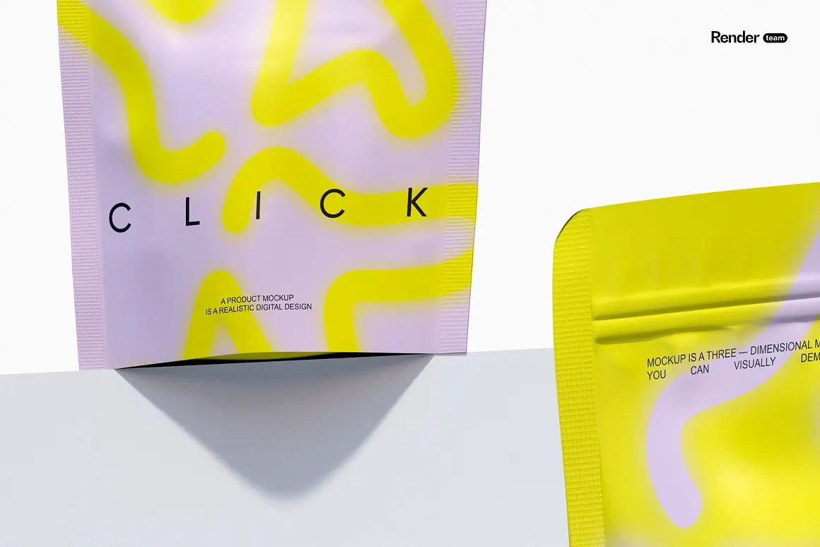 Matte Stand-Up Pouch Mockup Set 6款哑光铝箔零食自立袋自封袋产品包装设计ps样机素材展示效果图