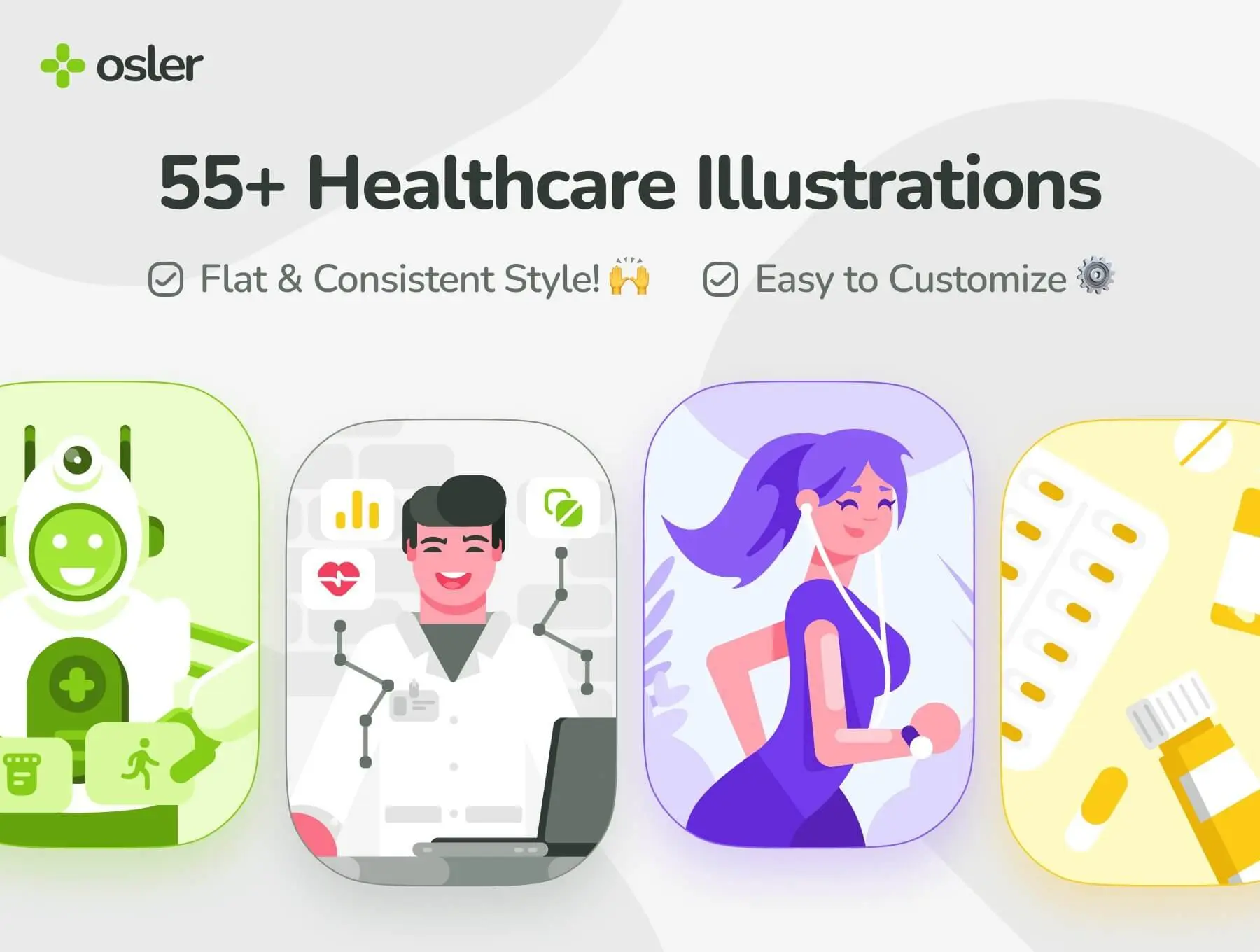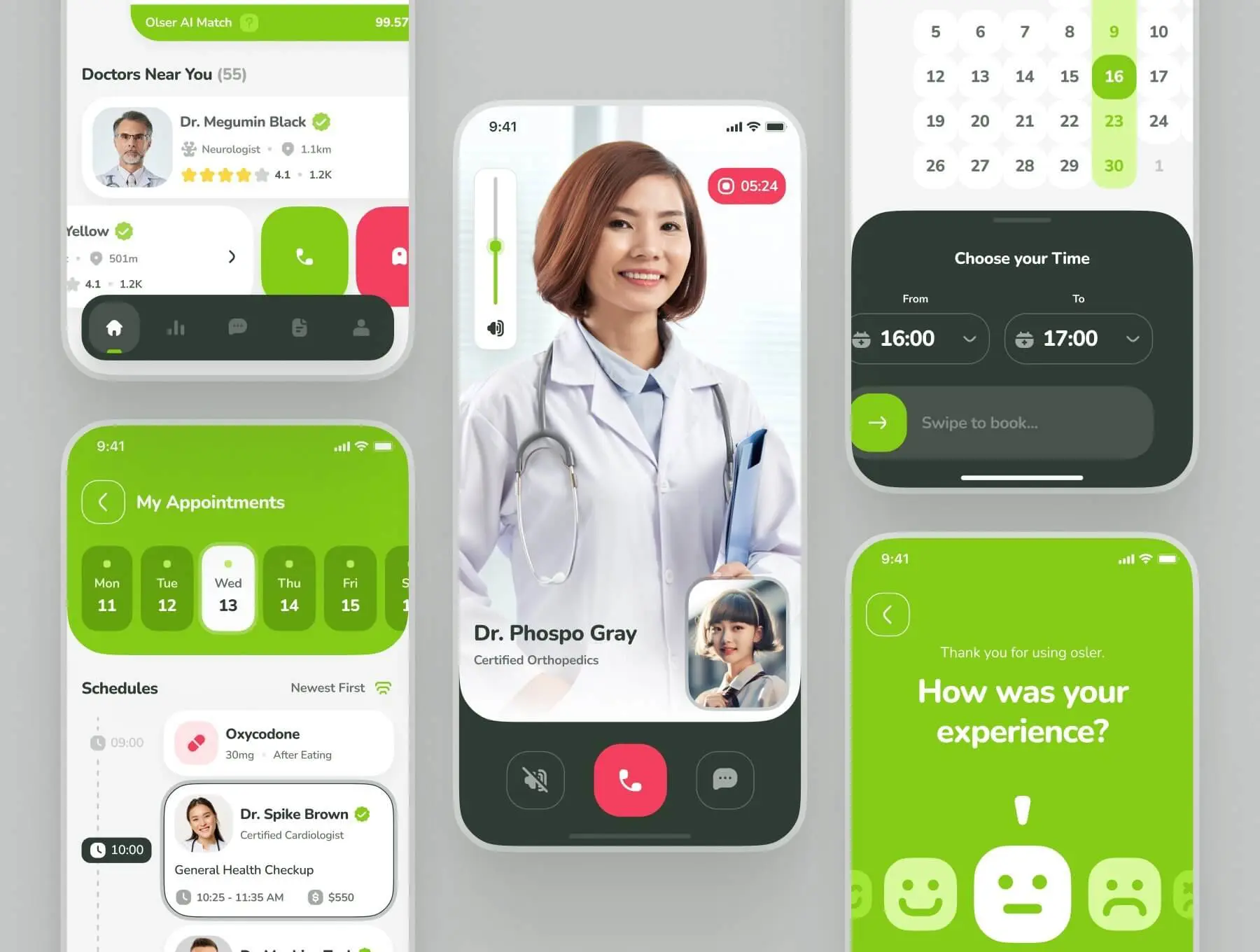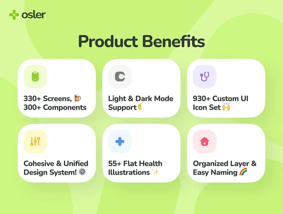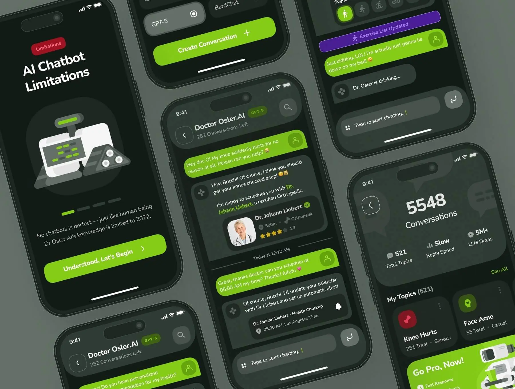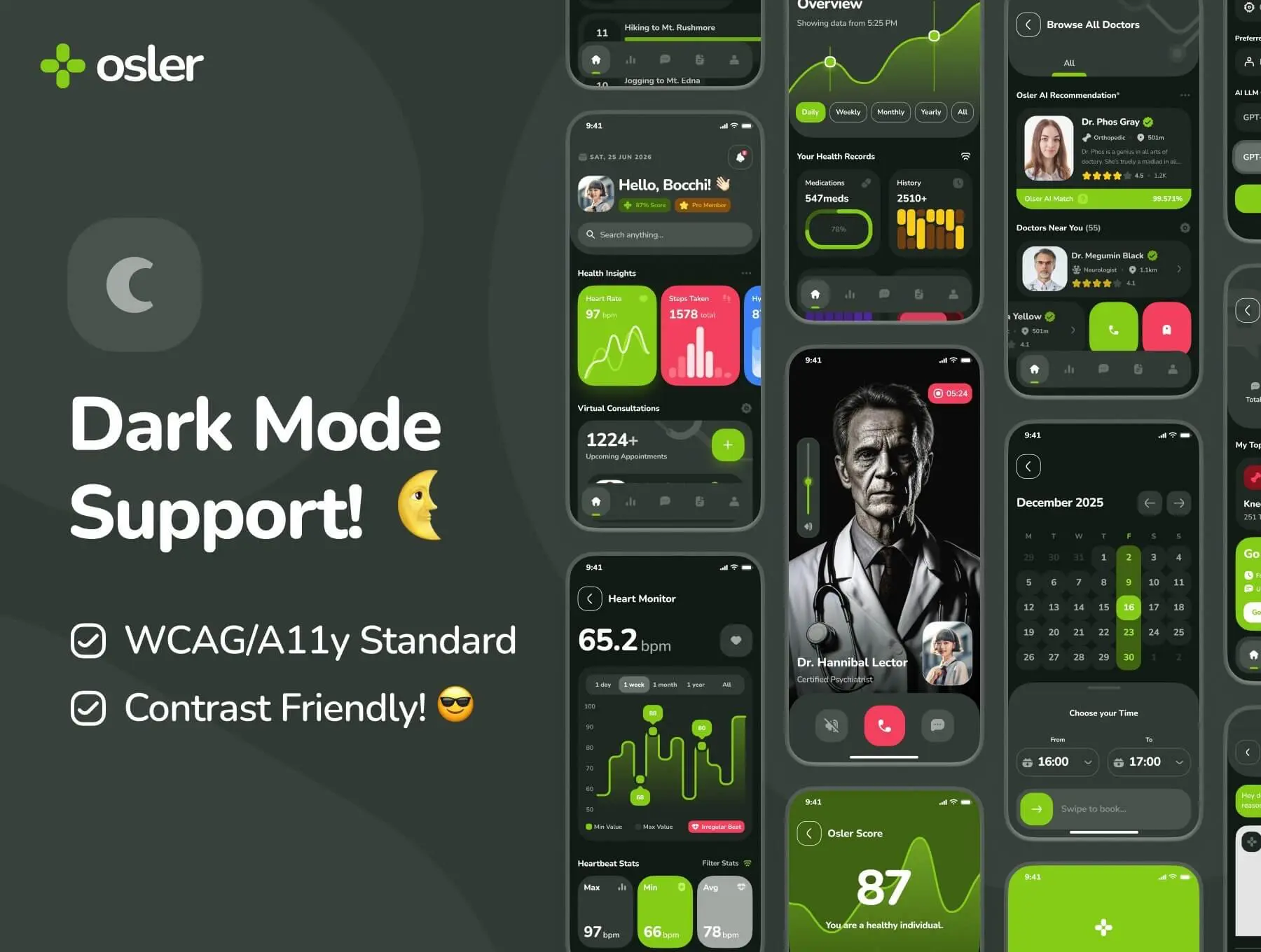 osler UI Kit AI Telehealth & Telemedicine App 330屏人工智能Ai机器人远程医疗应用用户界面app设计ui套件明暗模板