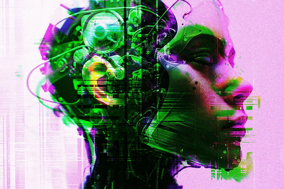 Distort Glitch Photo Effect 潮流未来科幻赛博朋克扭曲错位故障风图像照片滤镜ps样机特效模板