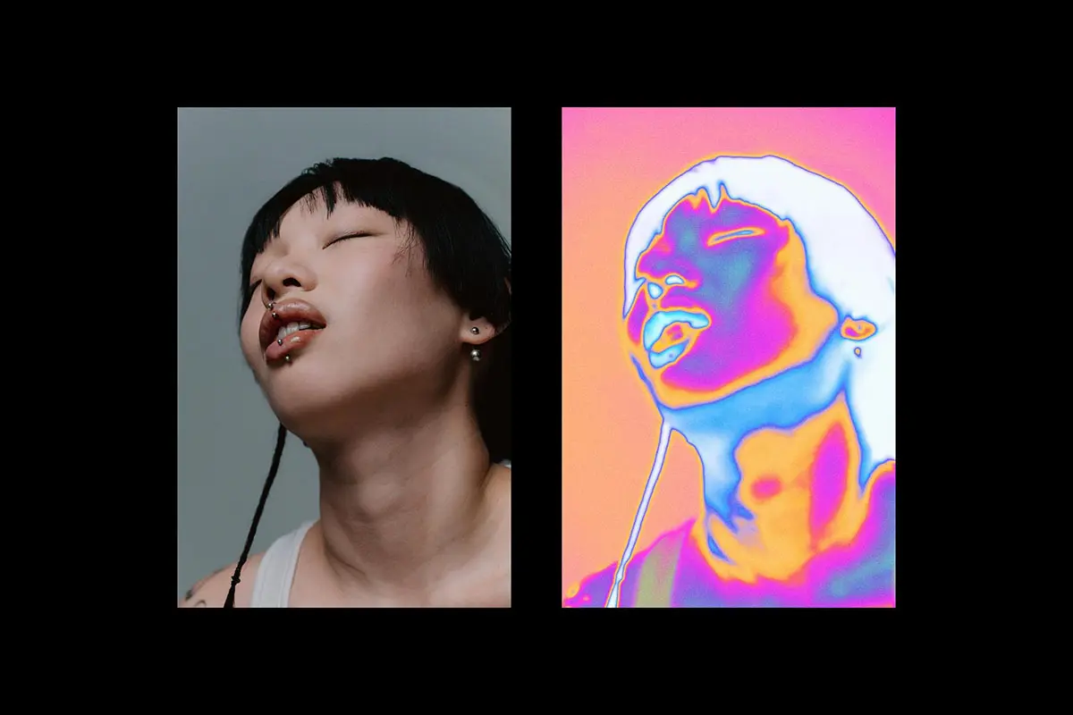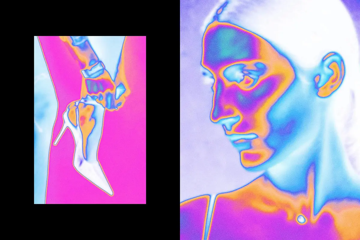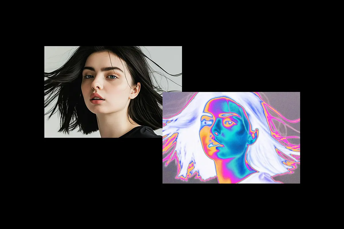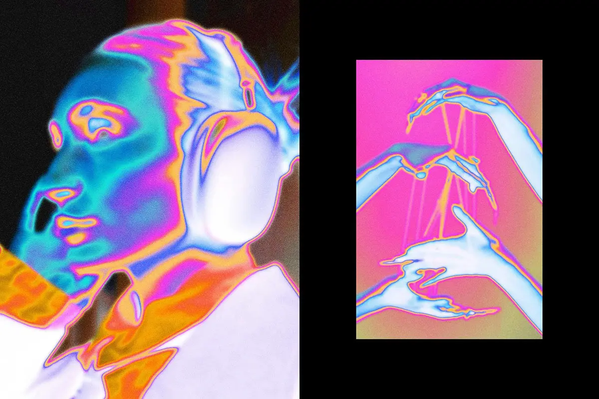 Thermal Imager Aura Photo Effect 潮流未来科幻热像仪红外线热成像全息图像照片滤镜ps特效样机模板