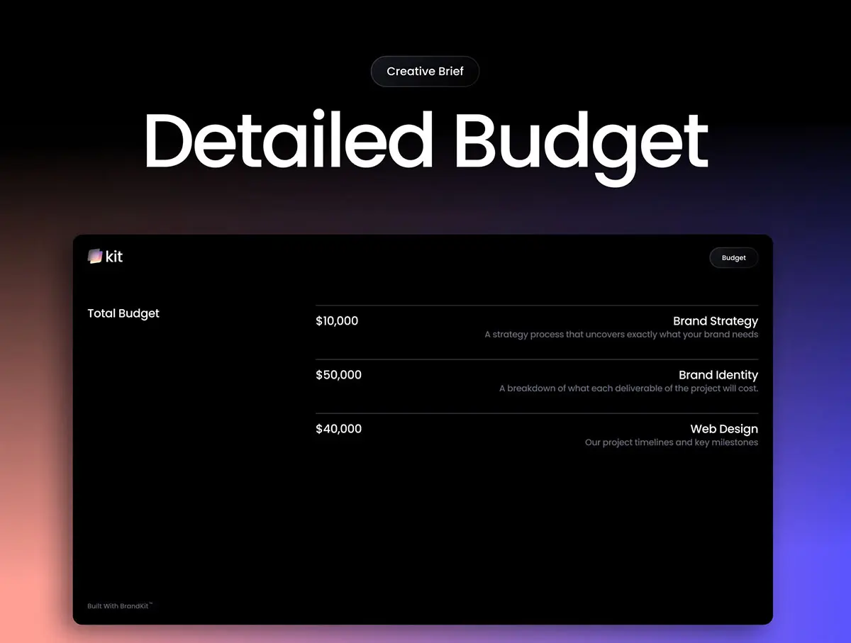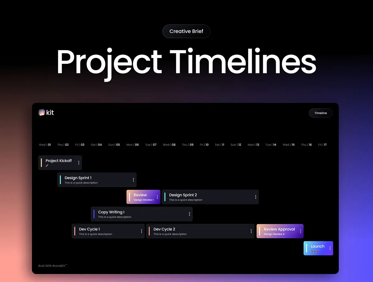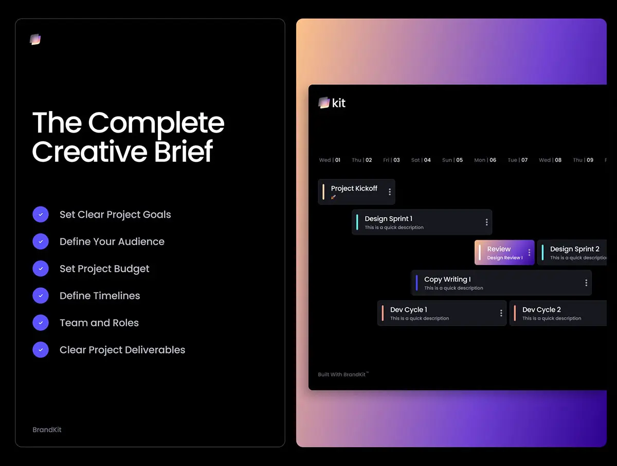 Creative Brief 创意时尚项目简报策划预算进程时间线团队介绍提案ui界面设计模板