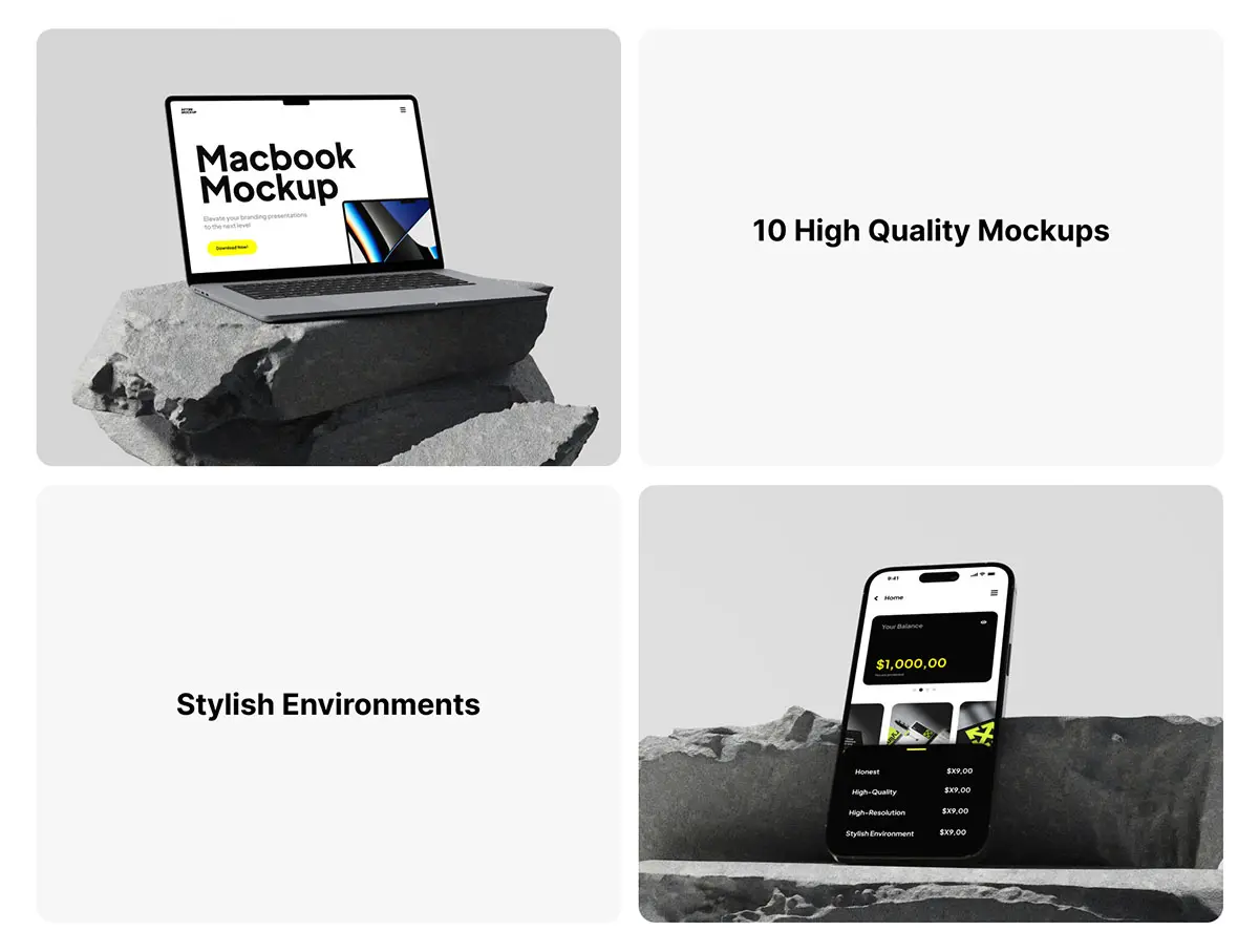 Hasnia Device Mockups 10款智能手机平板笔记本电脑模型ui作品展示设计贴图ps样机素材模板