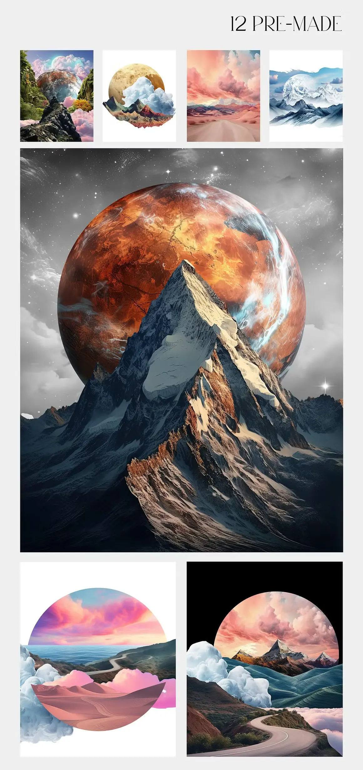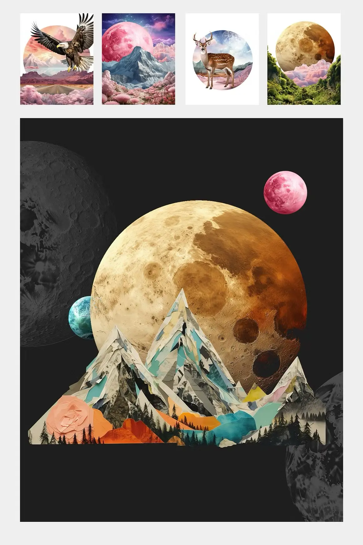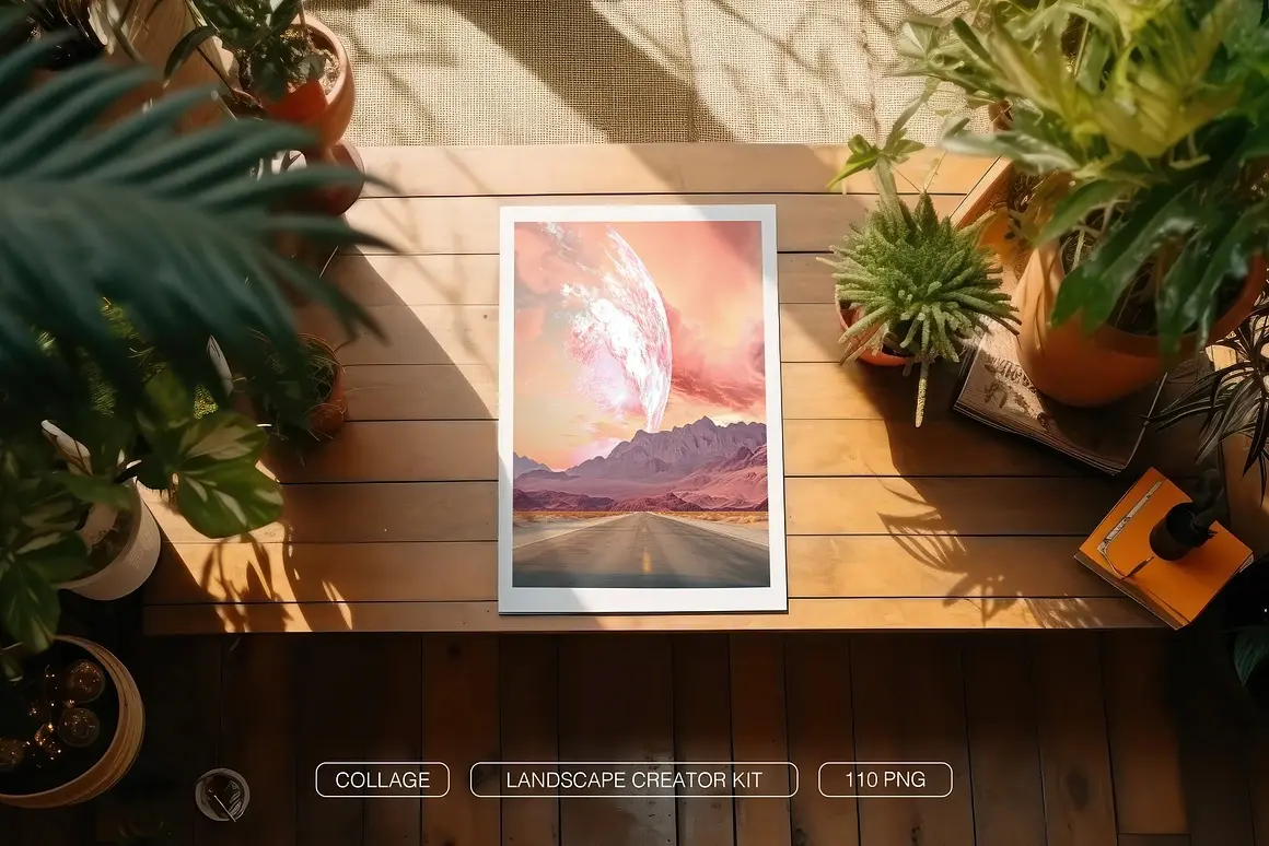 Landscape collage creator kit 超现实主义时尚自然风光森林山脉沙漠梦幻拼贴webp免抠图片素材