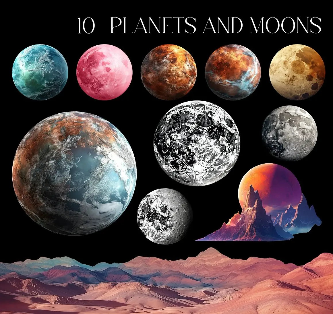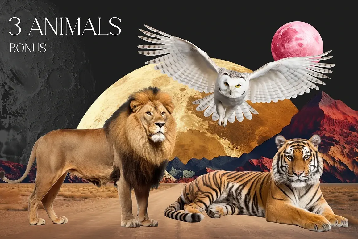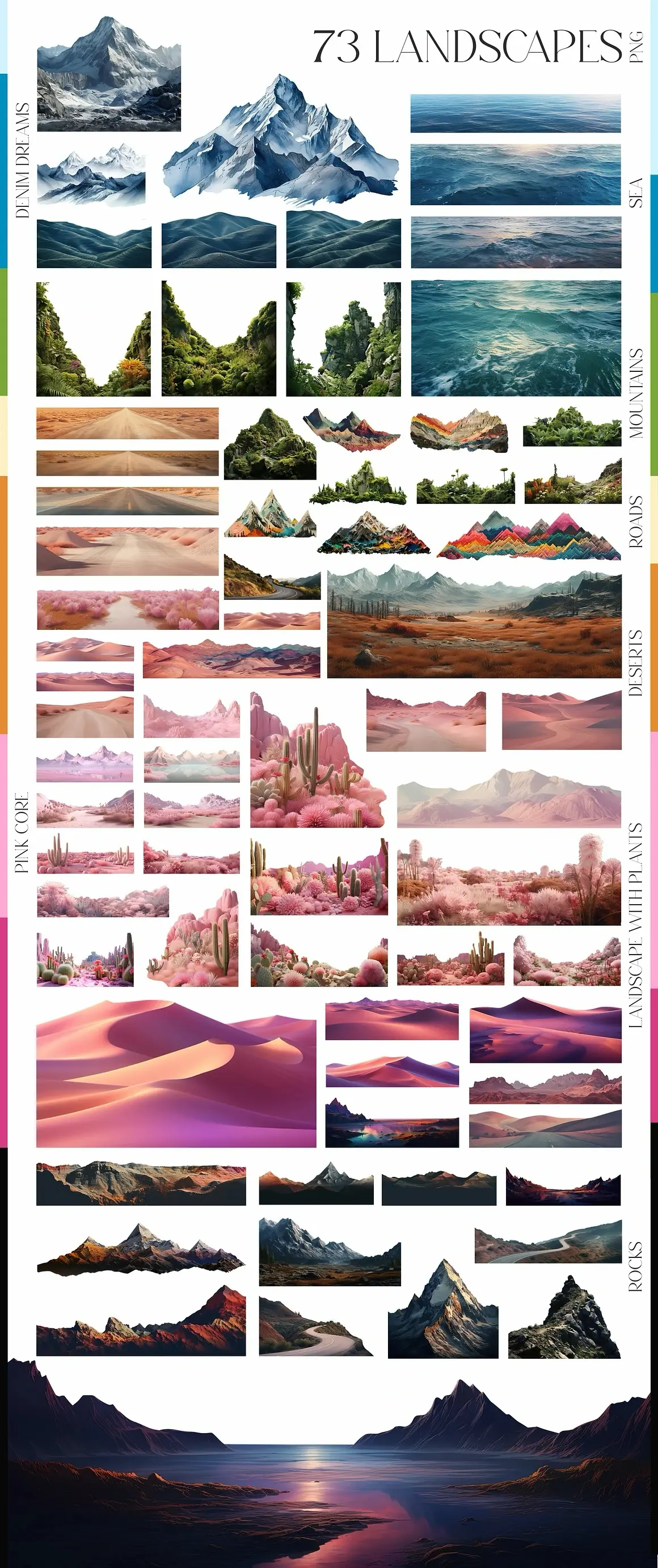Landscape collage creator kit 超现实主义时尚自然风光森林山脉沙漠梦幻拼贴webp免抠图片素材