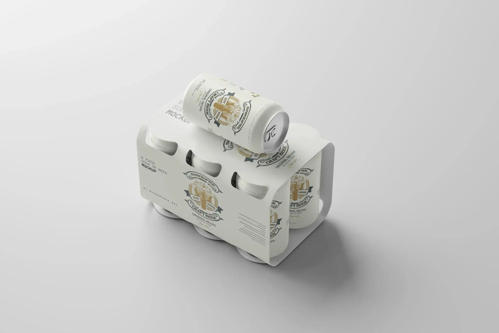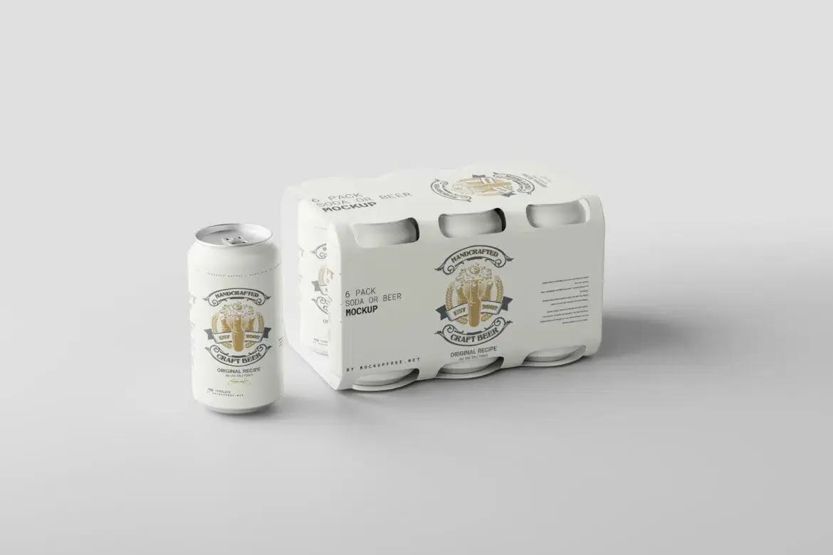 Soda or Beer Can Six-Pack Mockup 6听装啤酒饮料苏打水套装组合包装设计ps样机素材展示效果图