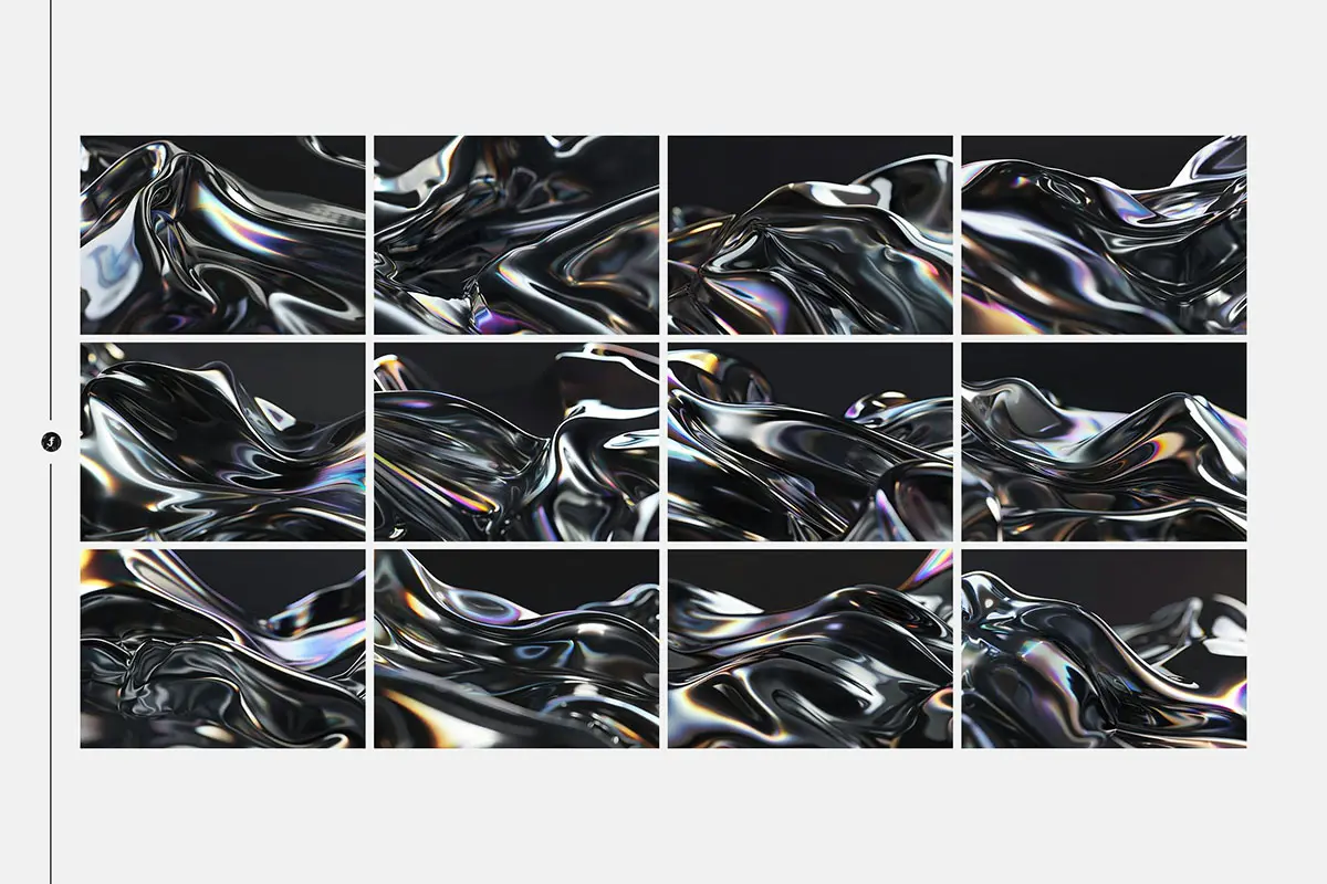 Iridescent Liquid Metal Backgrounds 五彩斑斓黑色液态金属流体波浪背景图片设计素材
