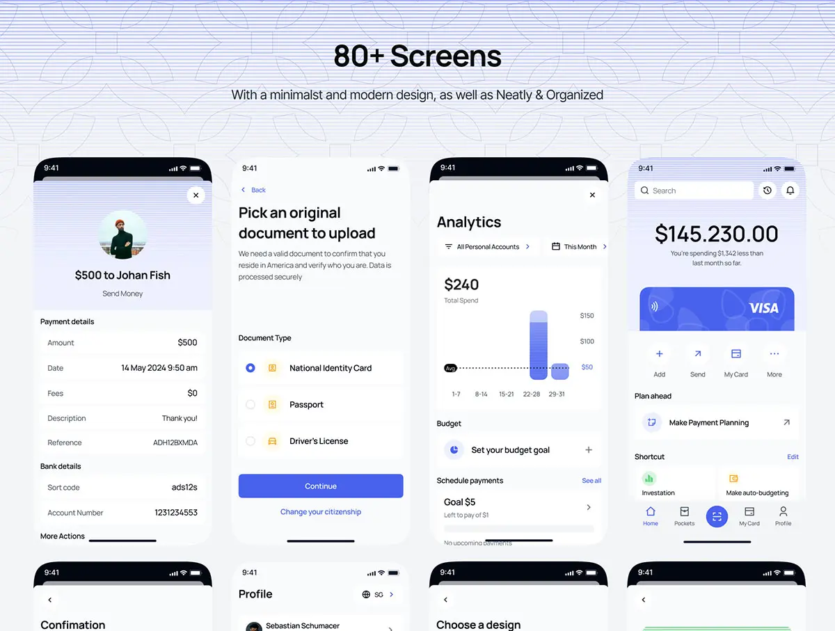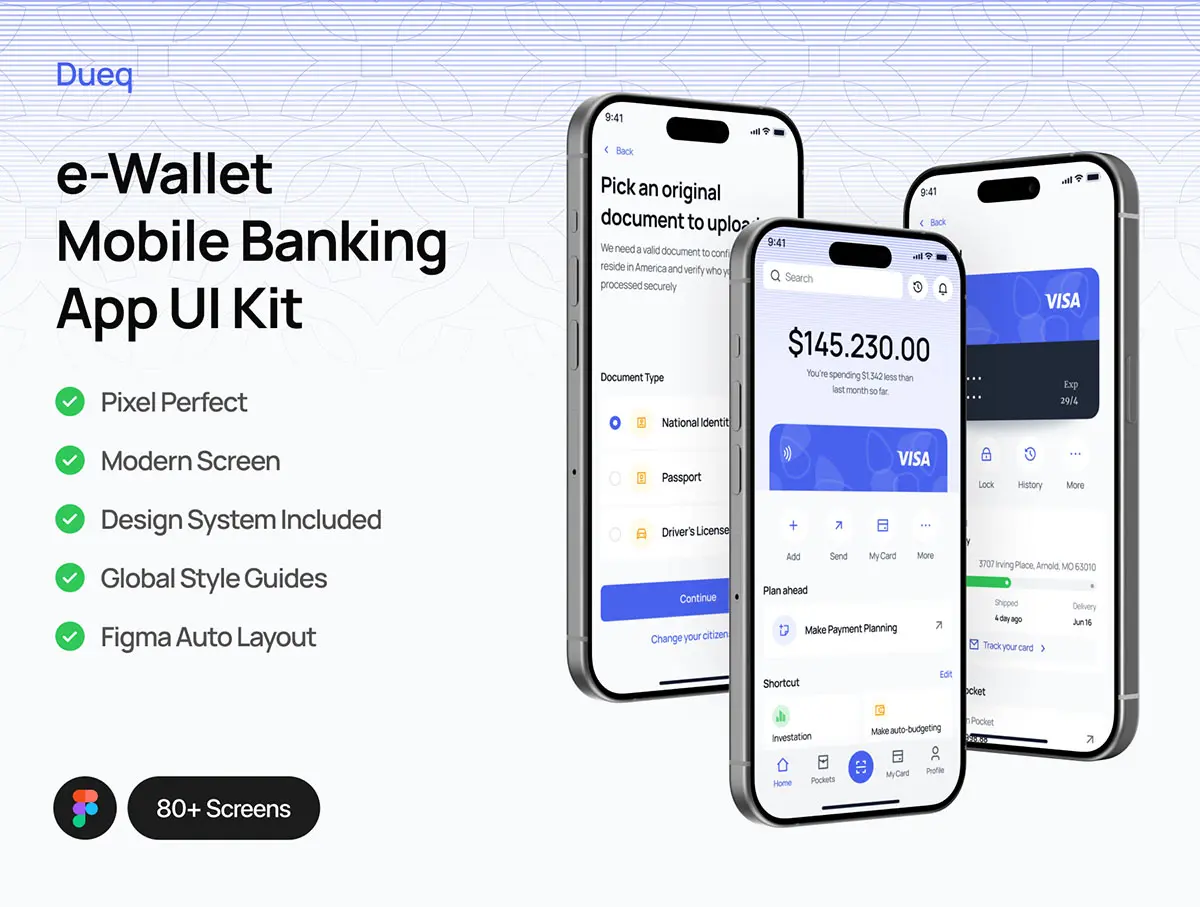 Dueq – Mobile Banking App UI Kit 80屏手机银行金融理财管理用户界面app设计ui套件模板
