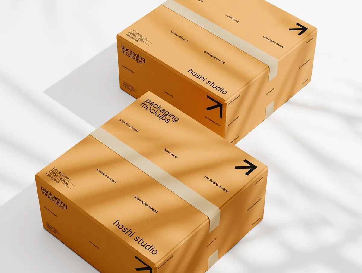 Brown Cardboard Mockups 8款正方形搬家打包收纳纸箱纸盒包装设计ps样机组合展示效果图