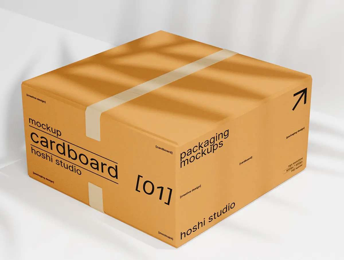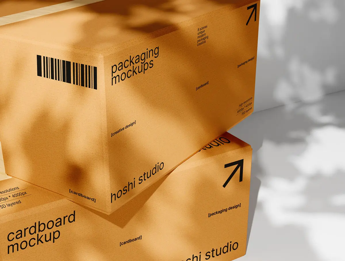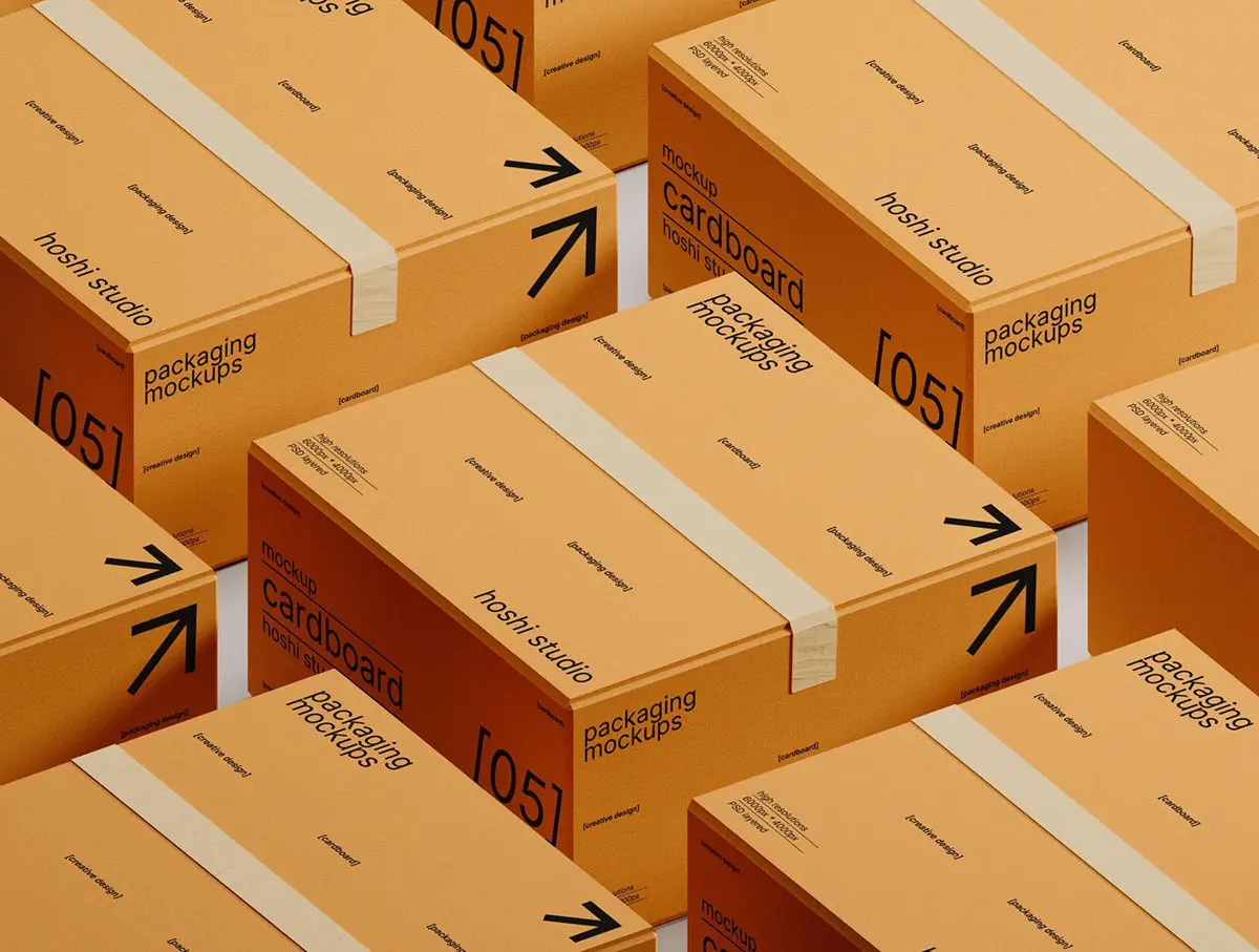 Brown Cardboard Mockups 8款正方形搬家打包收纳纸箱纸盒包装设计ps样机组合展示效果图