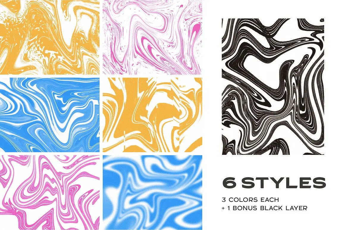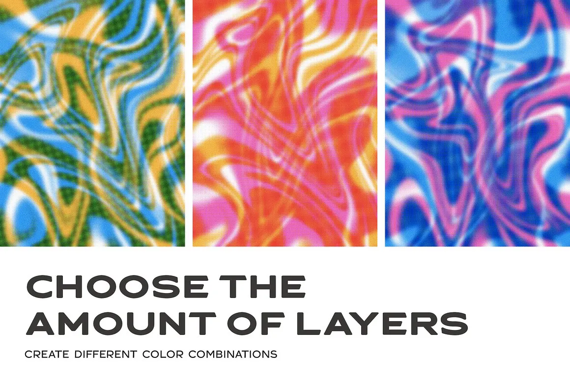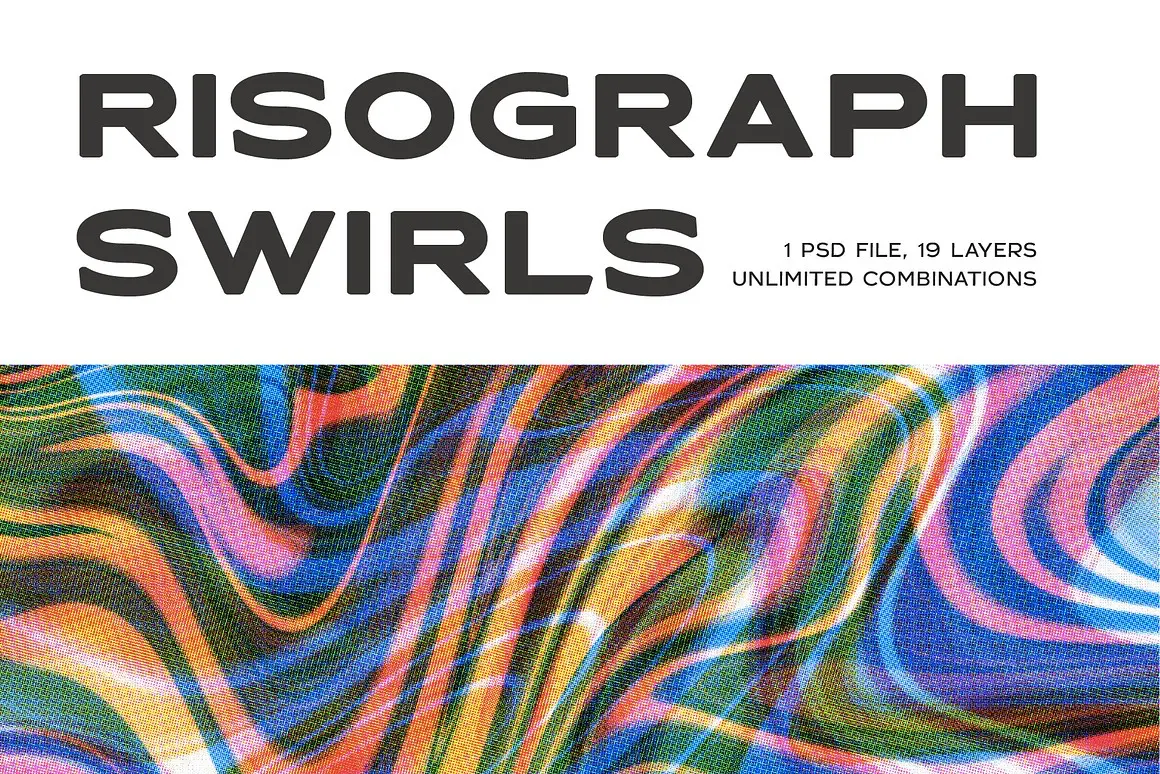 Risograph Swirls 鲜艳多彩抽象流体背景图片psd分层叠加设计素材