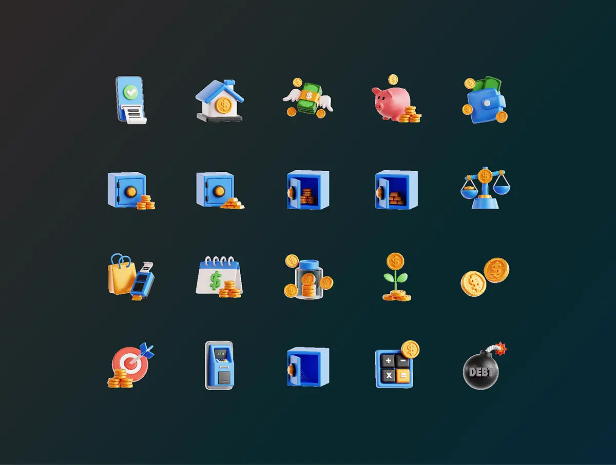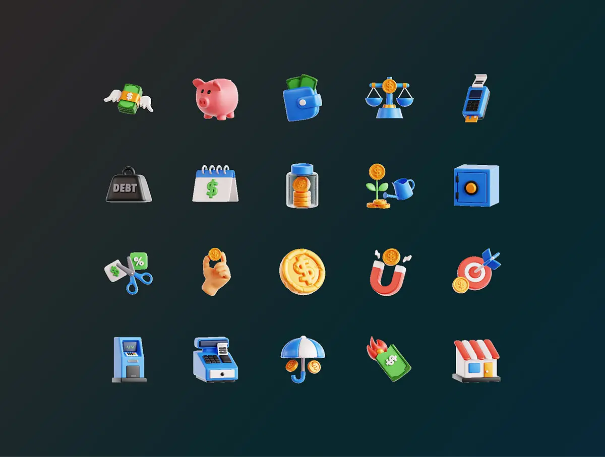 Money & Finance 3D Icon Pack 40款时尚卡通3D立体金融货币储蓄消费icon图标webp免抠图片素材