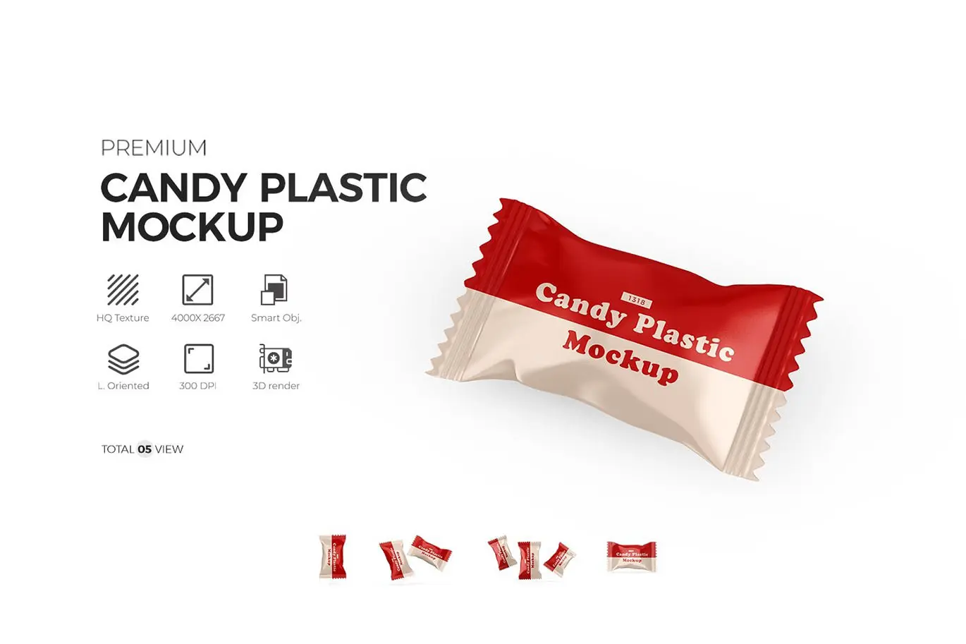 Candy Plastic Pack Mockup 5款糖果巧克力塑料包装模型品牌logo标识设计贴图ps样机素材
