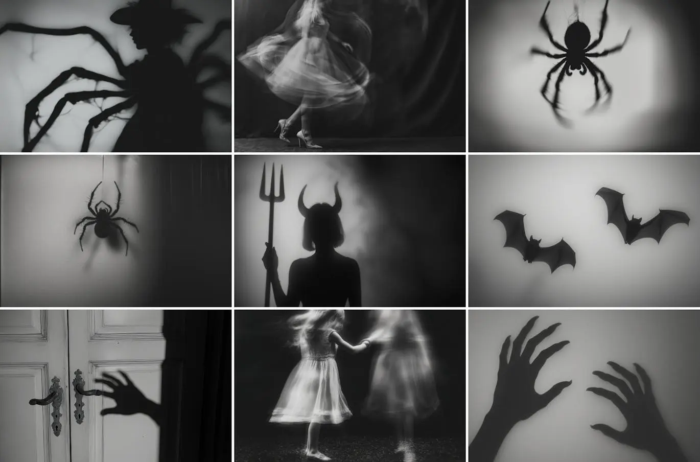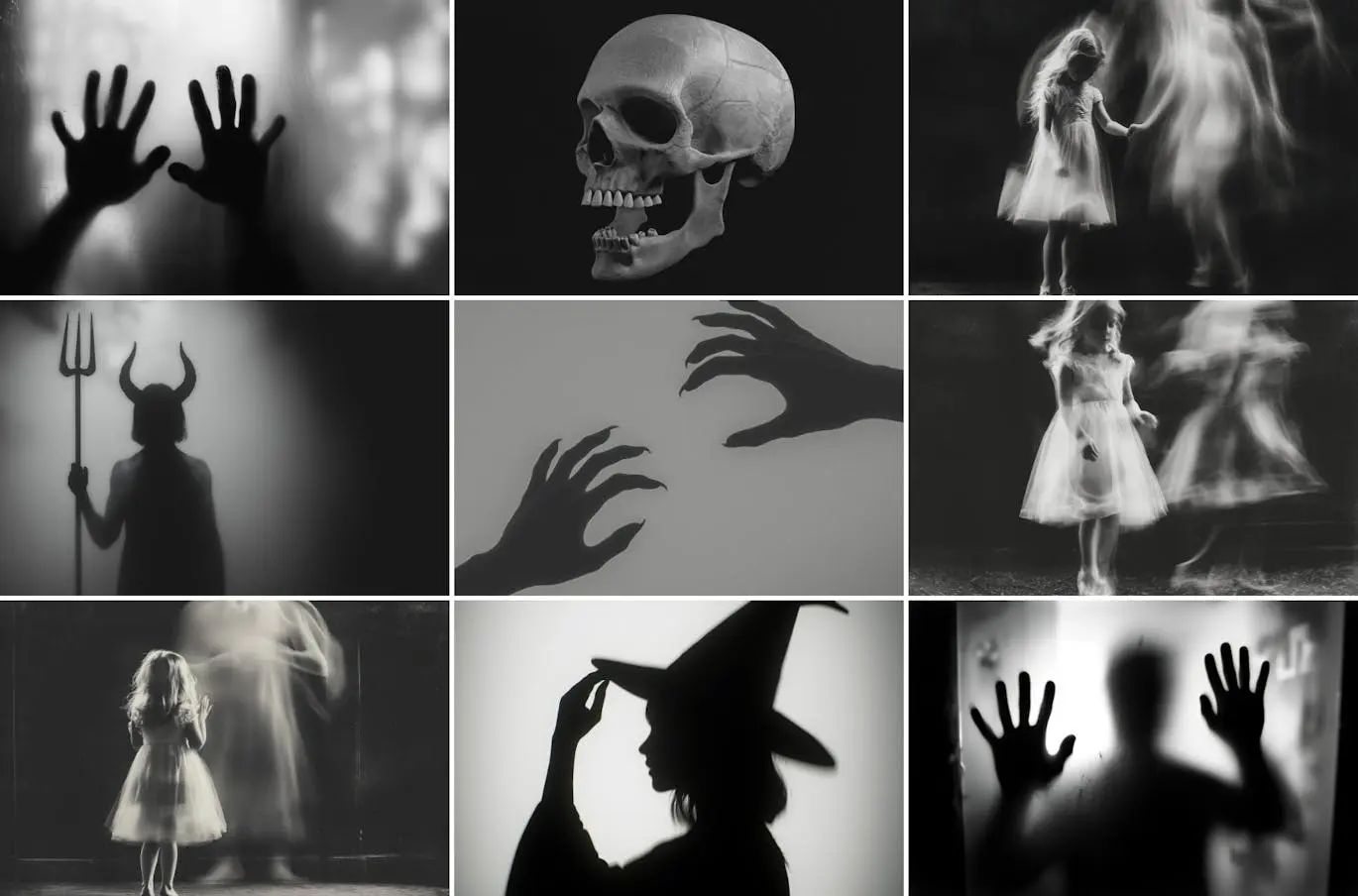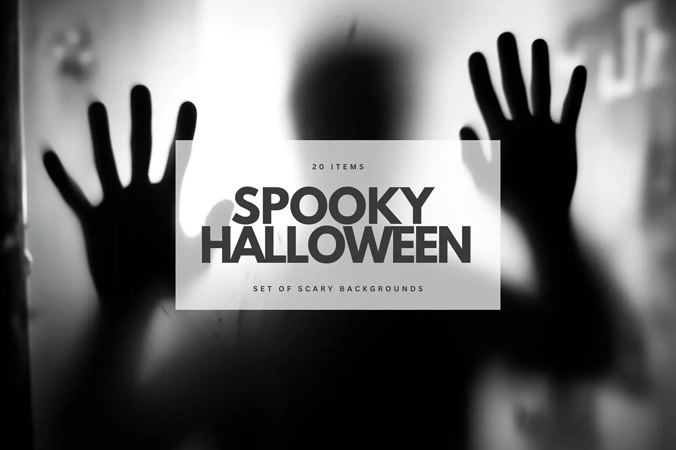 Halloween Spooky Horror Backgrounds 20款黑白单色万圣节幽灵蜘蛛女巫骷髅惊悚恐怖鬼节背景图片素材