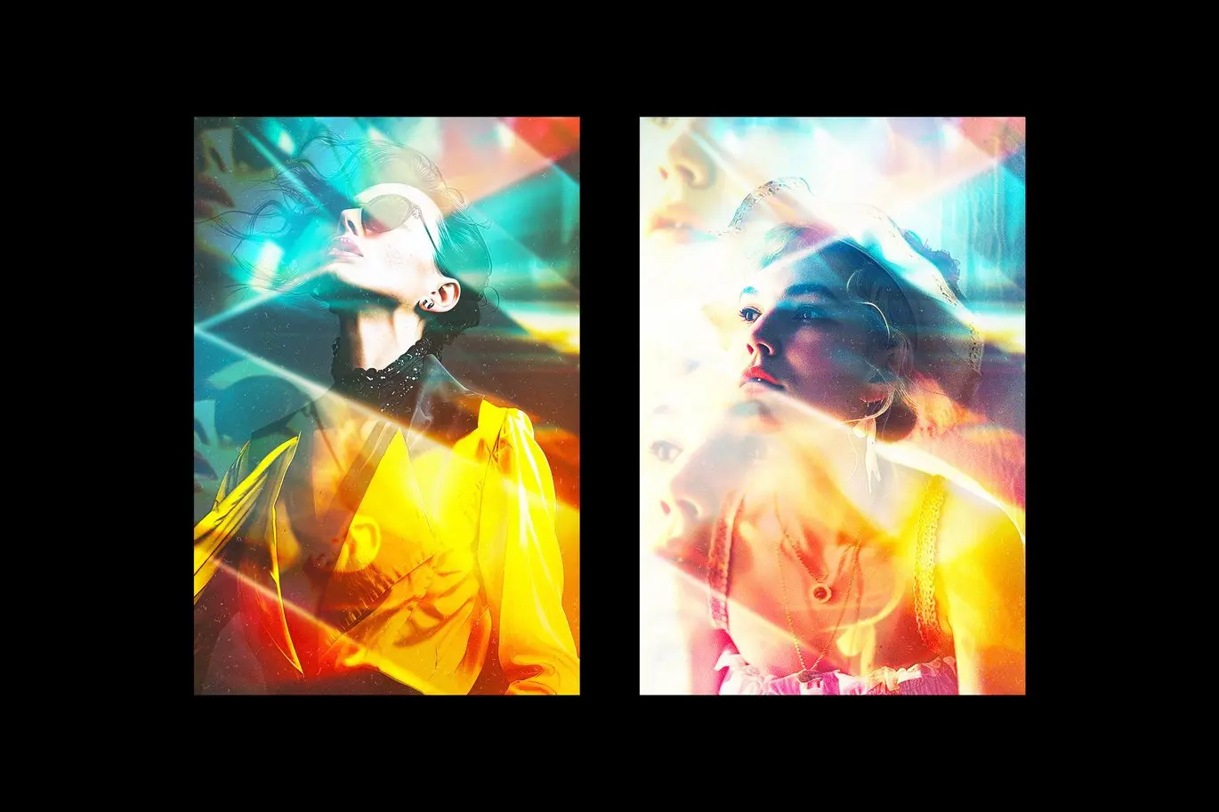 Prismatic Fragments Photo Effect 棱镜破碎玻璃折射虹光照片图像ps特效样机素材预制模板