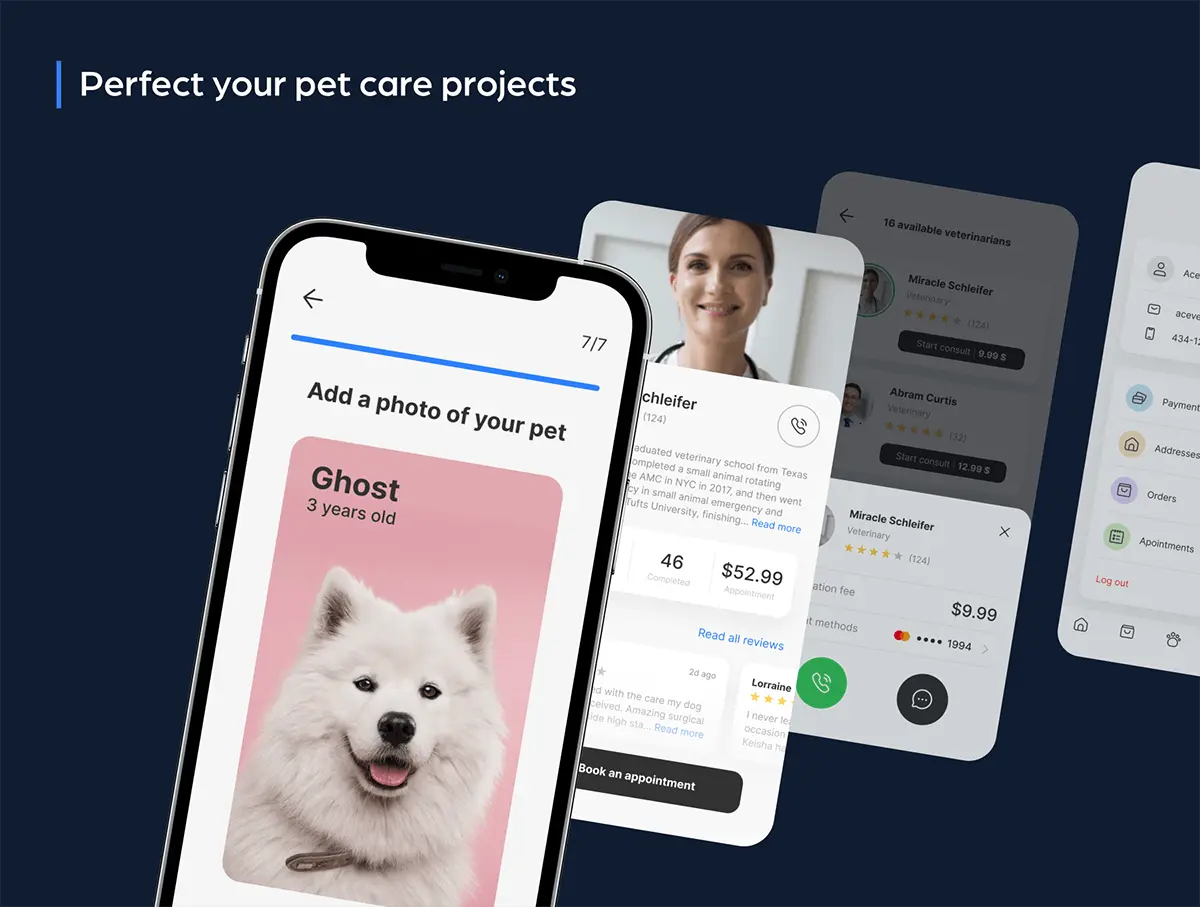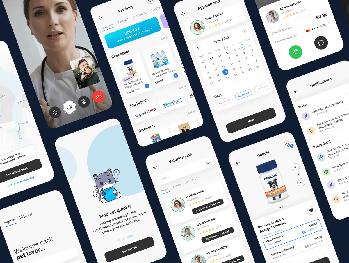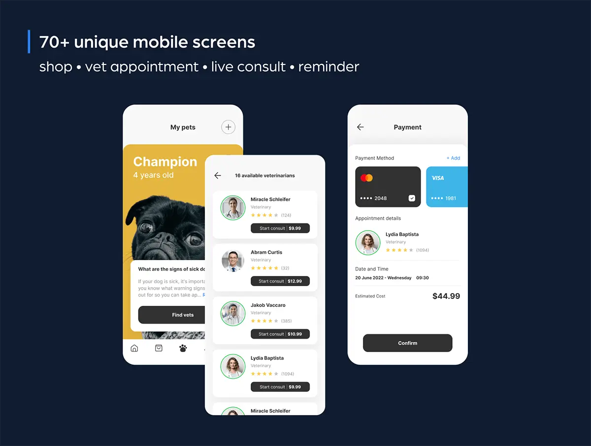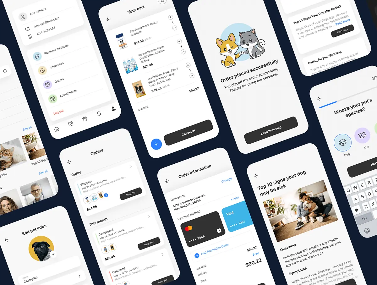 Petito Pet Care App UI Design Kit 70多屏宠物护理应用程序 UI 设计套件