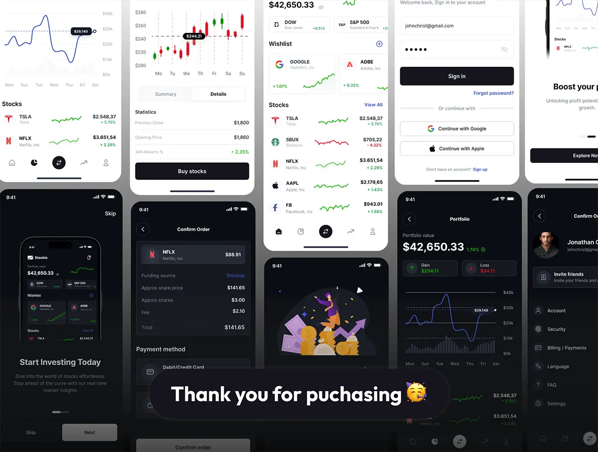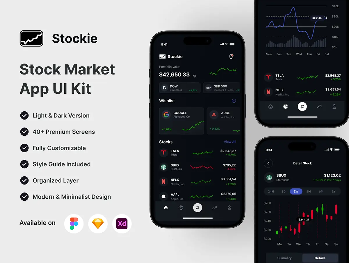 Stokie – Stock Market UI Kit App 股票市场金融理财投资移动炒股应用程序UI设计套件