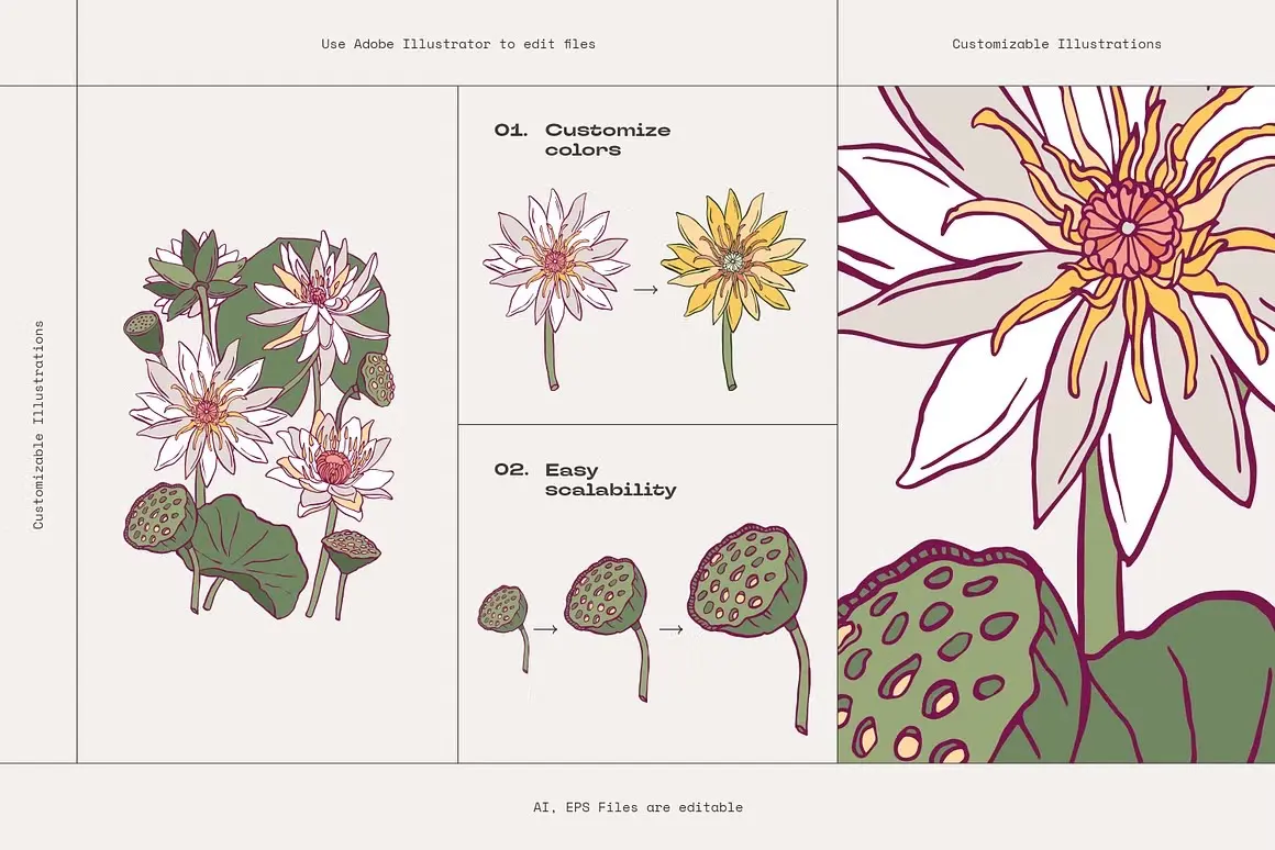 Flower Boom Prints Posters 现代装饰艺术手绘植物花卉鲜花插图插画海报设计ai矢量素材源文件