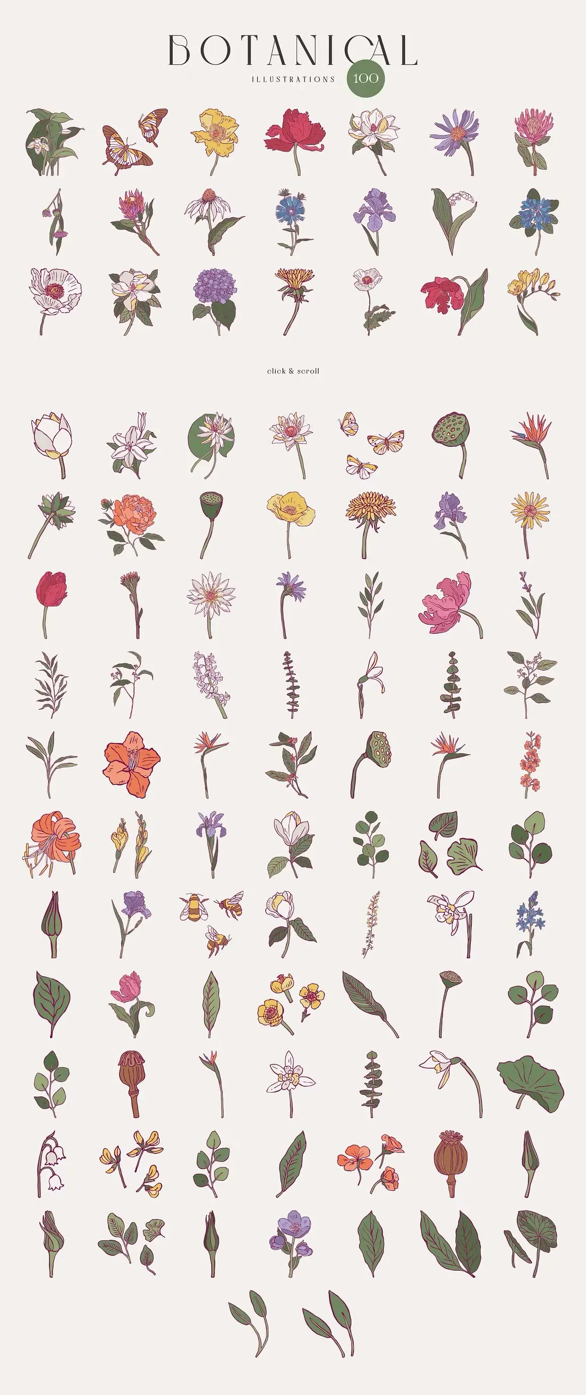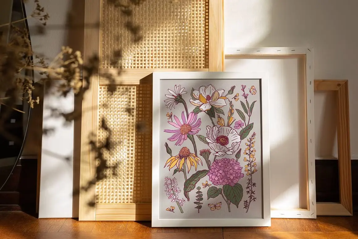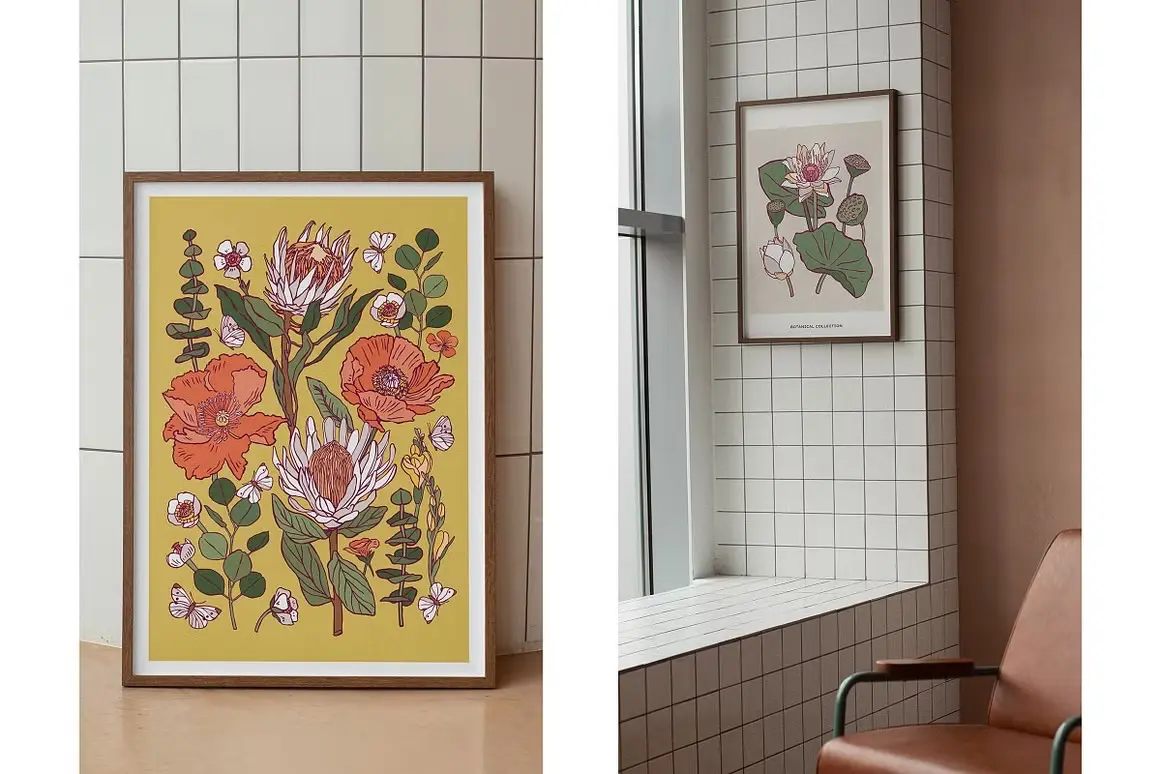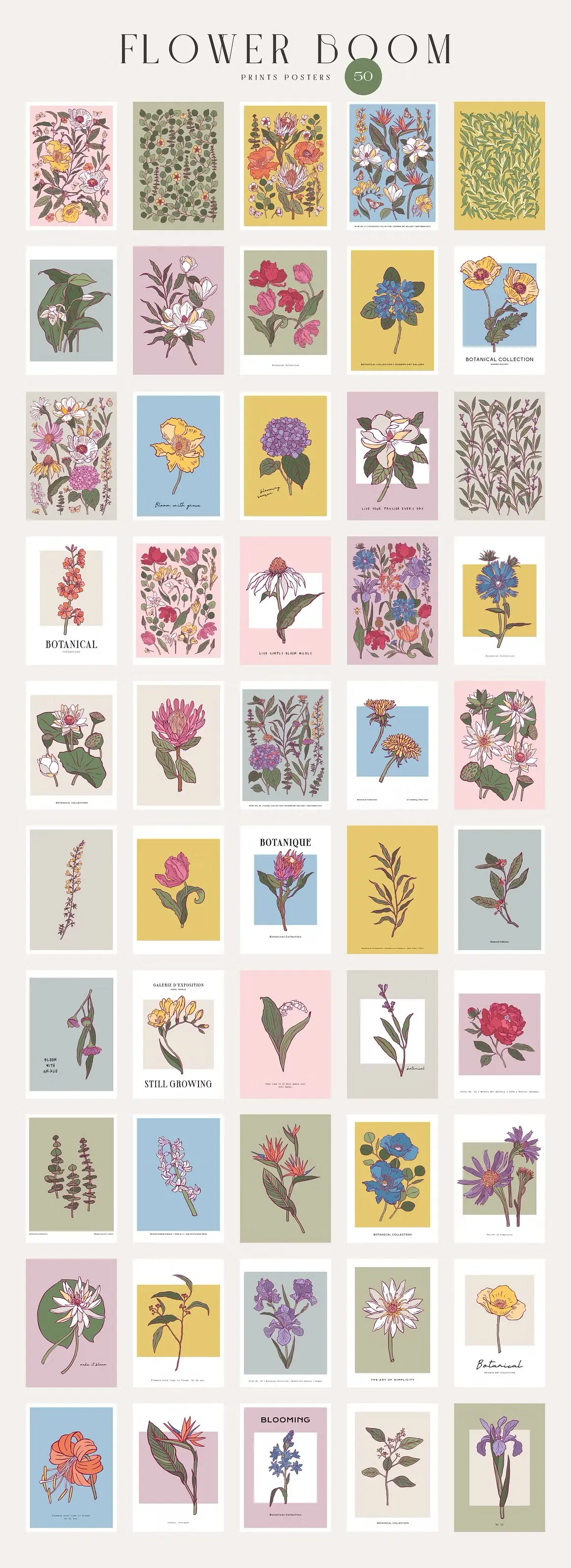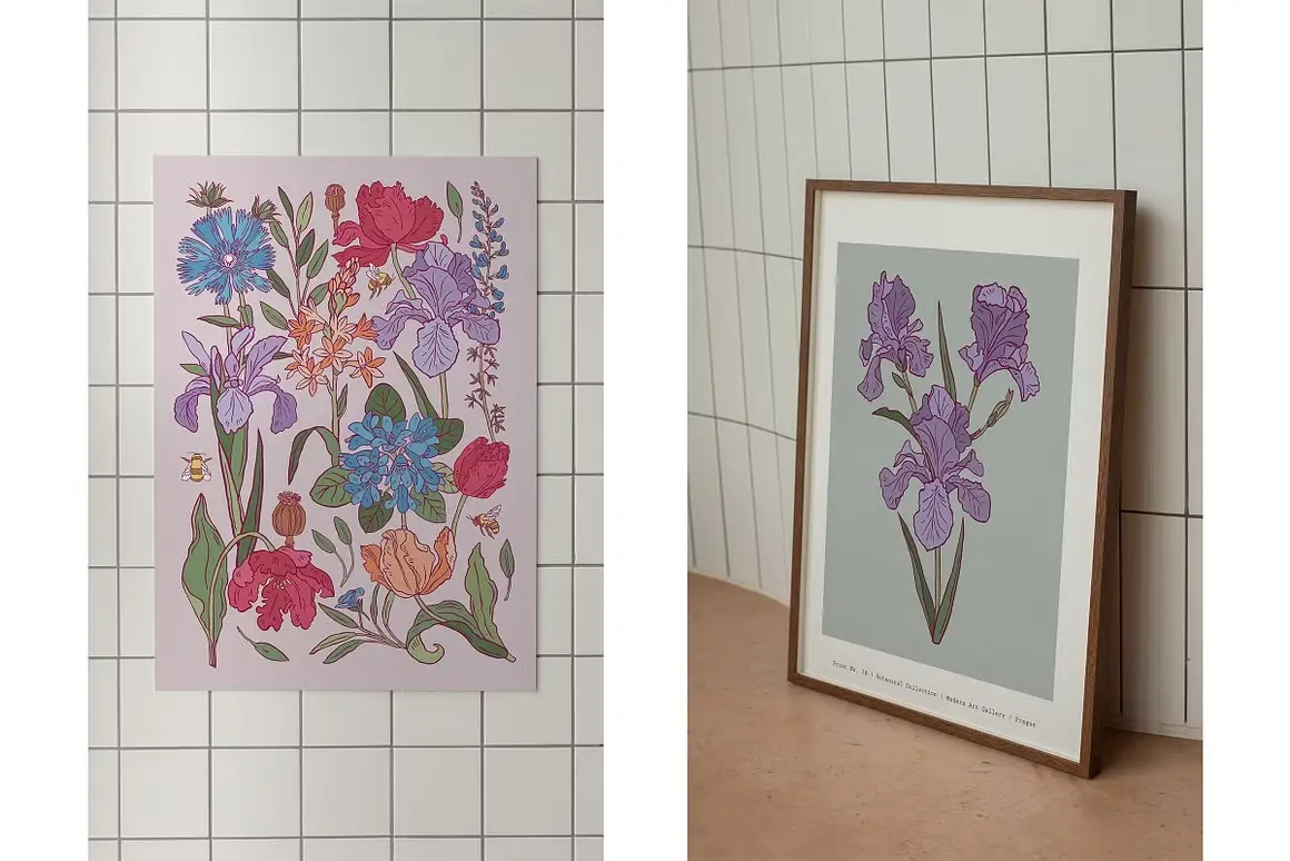Flower Boom Prints Posters 现代装饰艺术手绘植物花卉鲜花插图插画海报设计ai矢量素材源文件