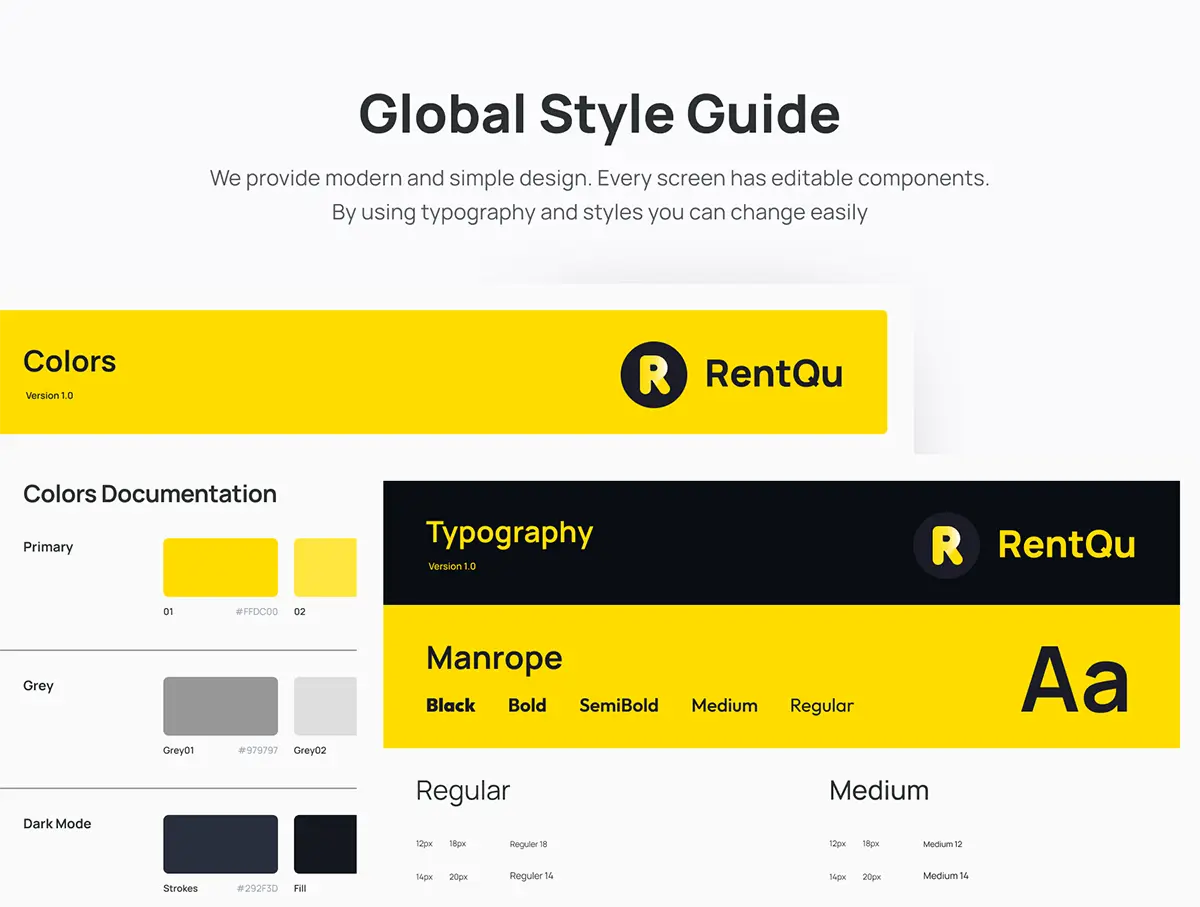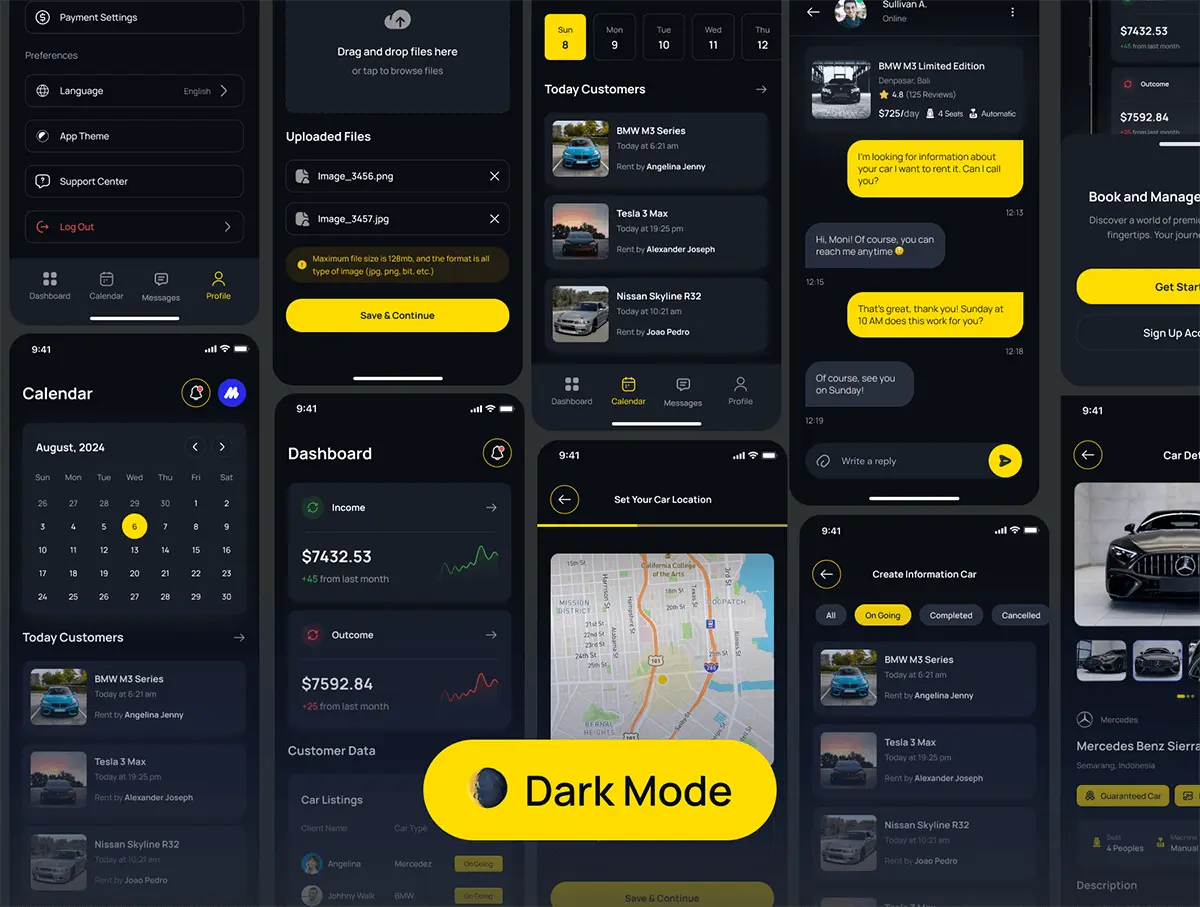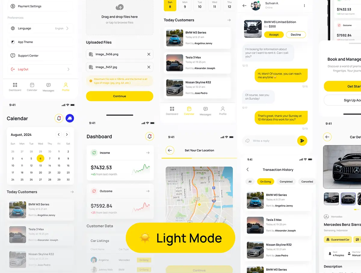 RentQu Seller – Car Rental Seller UI Kit App 100多屏双配色汽车租赁卖家 UI 套件应用程序