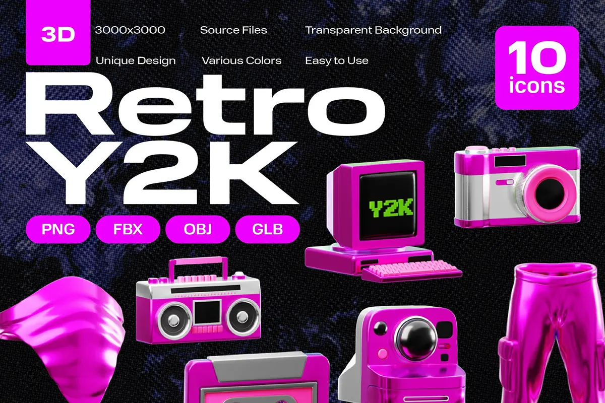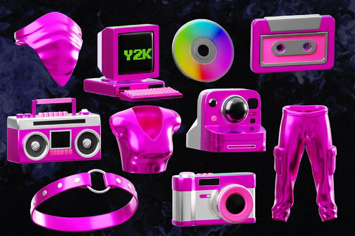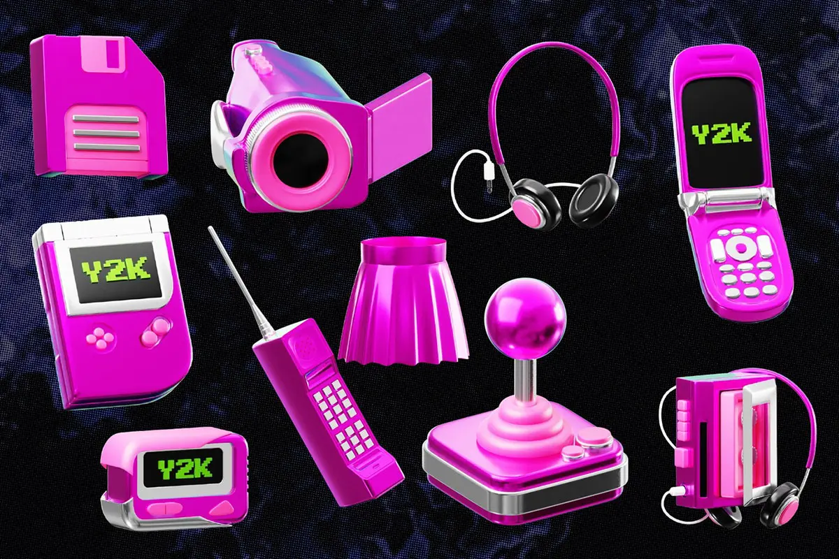 Retro Y2K 3D Icon Set 20款Y2K复古3D数码产品游戏机潮流插图插画webp免抠图片素材
