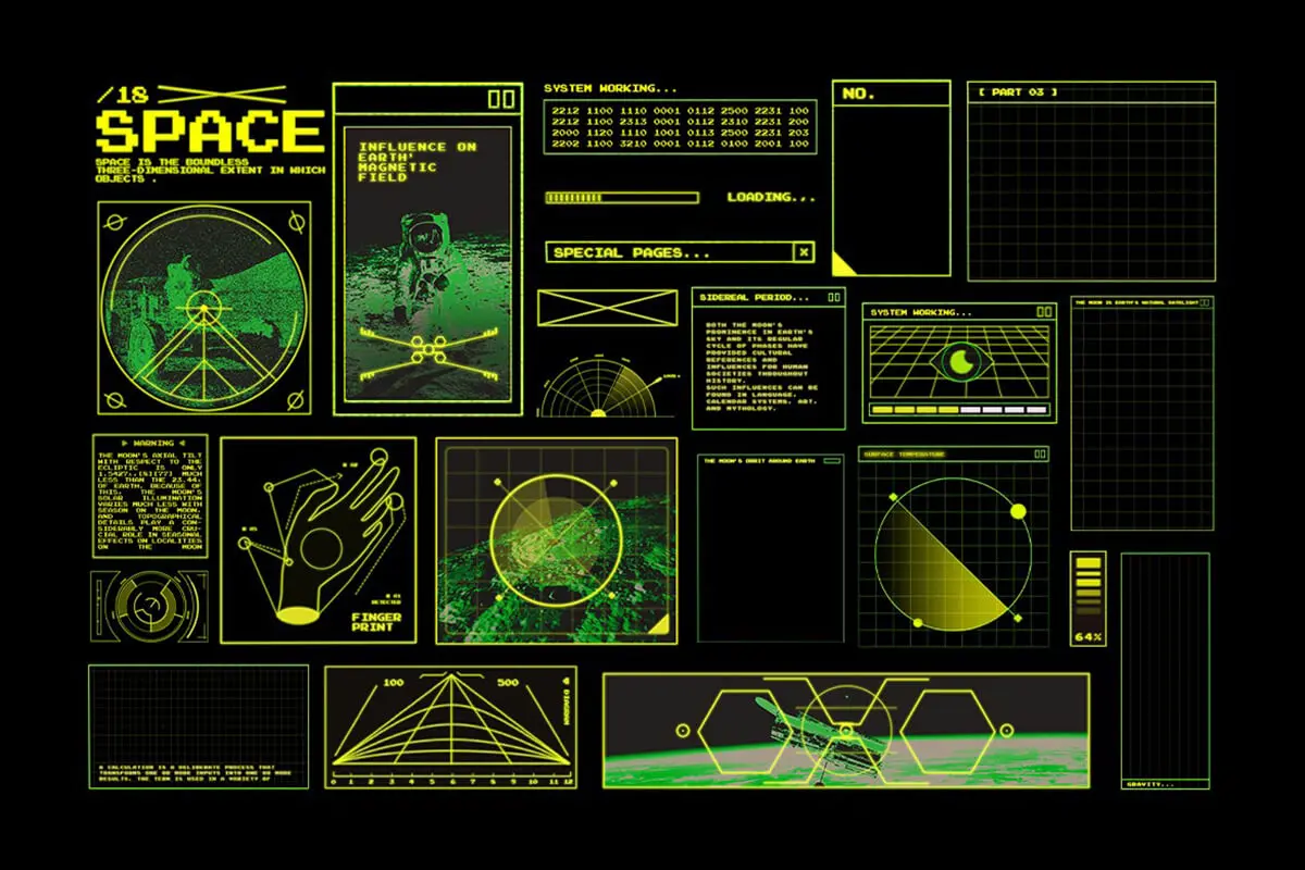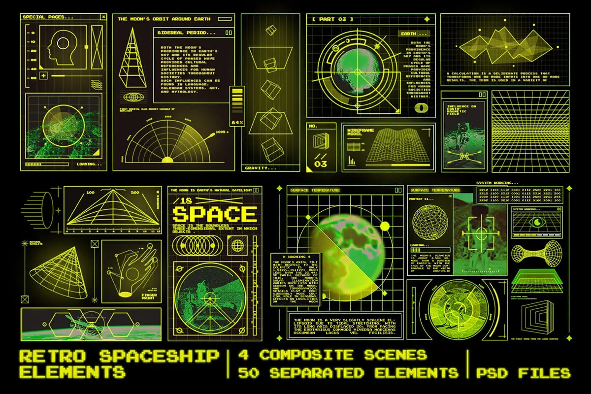 Retro Spaceship HUD 复古太空宇宙飞船检测探测设备HUD数据可视化仪表板psd分层设计素材