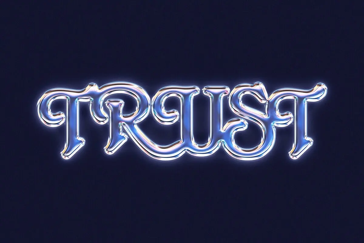 80s Television Chrome Text Effect 复古潮流金属镀铬玻璃发光文本字母标题标语ps特效样机素材预制模板