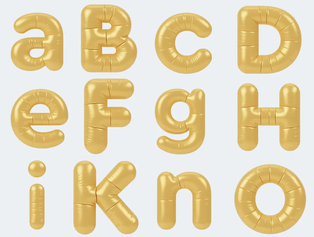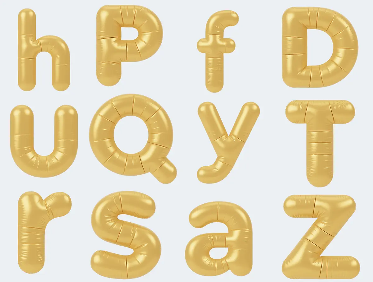 Balloon Alphabet 3D Icon Pack 56个3D趣味充气膨胀塑料英文字母PNG插画icon图标C4D模型设计素材