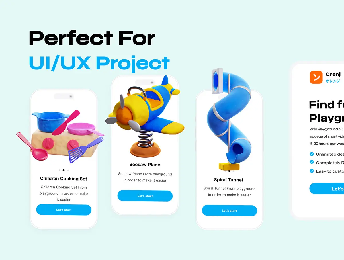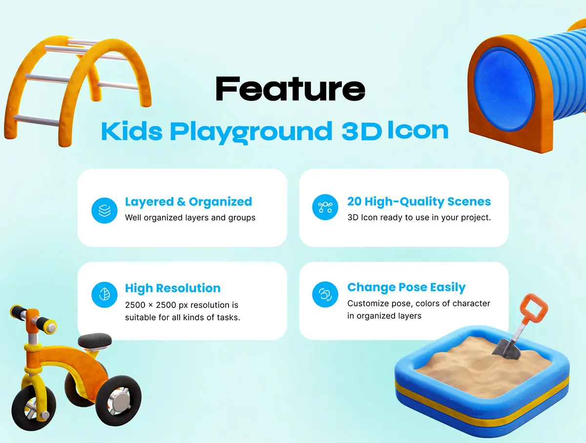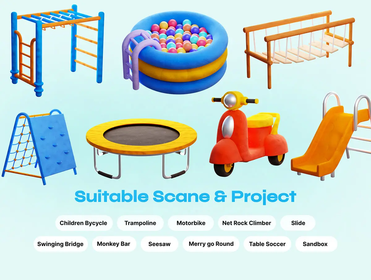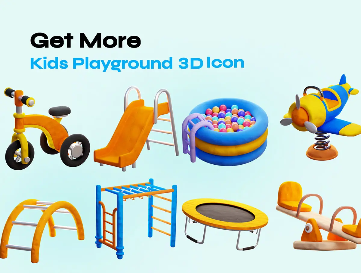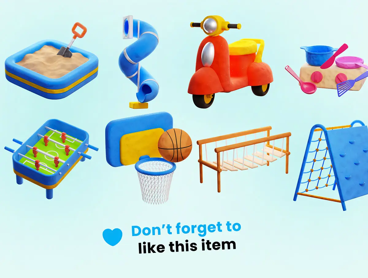 Kids Playground 3D icon 30款趣味卡通3D儿童乐园公园游乐场项目设施PNG免扣插画插图icon图标Blender模型