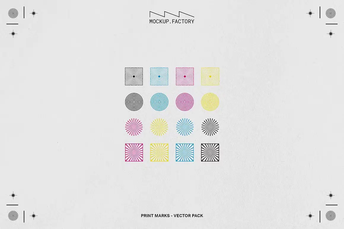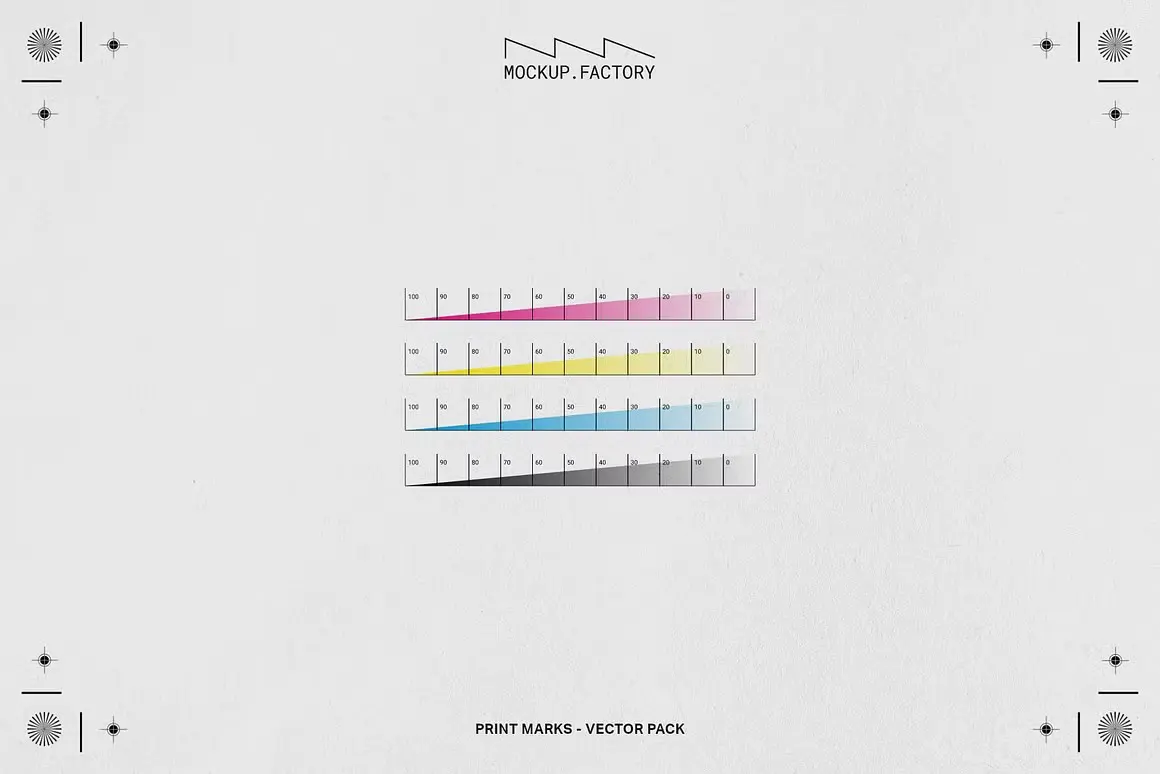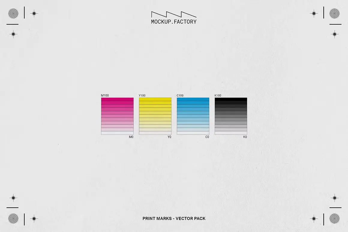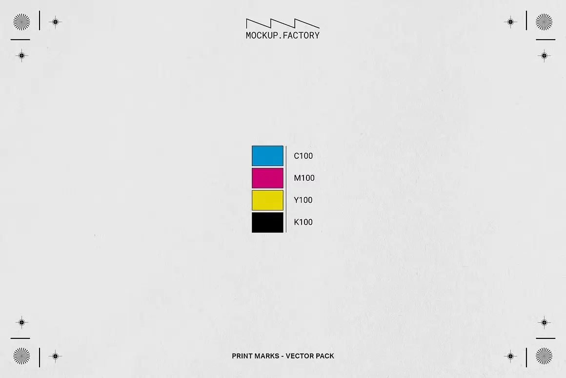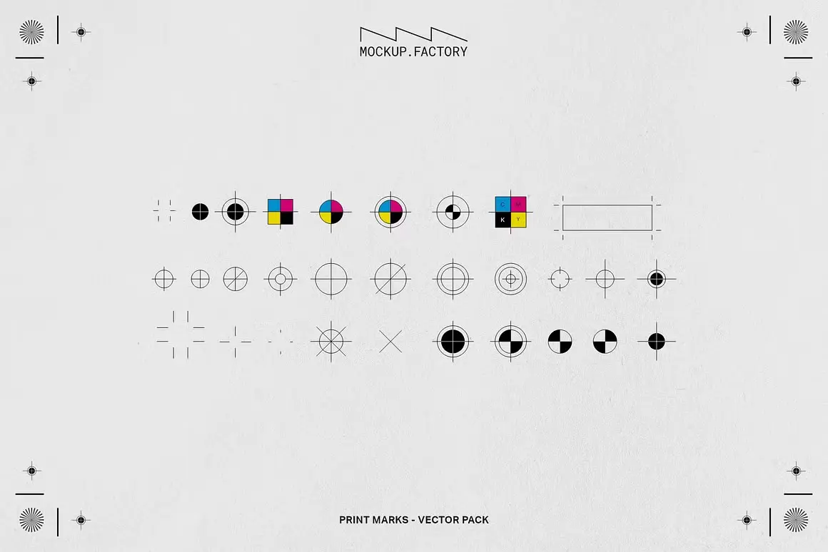 Print Marks 120+ Vector Assets 120+ CMYK四色丝网印刷制图标准VI规范标记符号色谱ai设计素材源文件