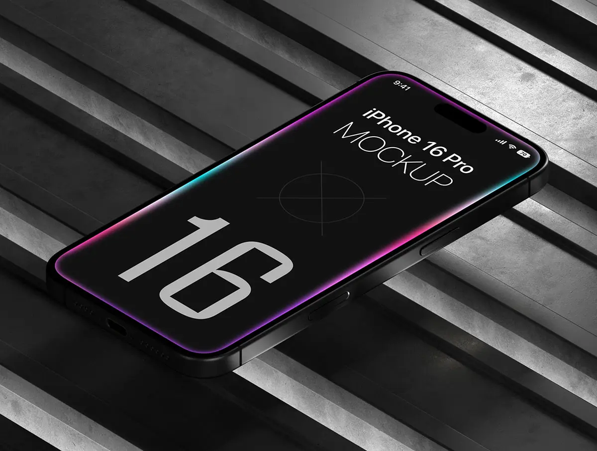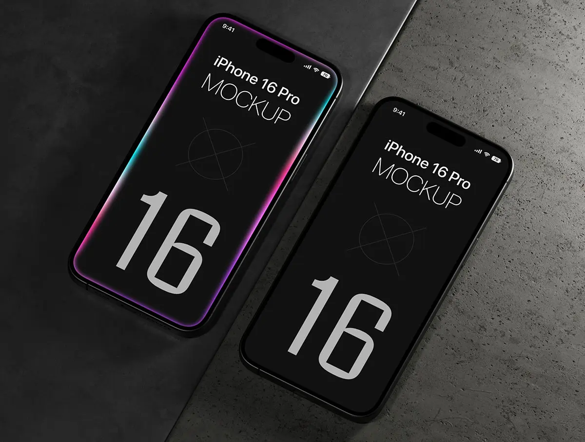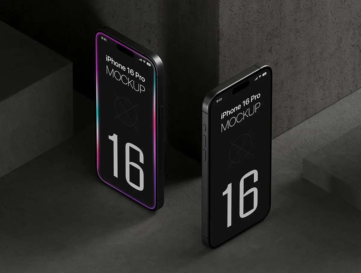 20 iPhone 16 Pro Mockups Vol.01 20款工业风 iPhone 16 Pro 手机广告App界面设计贴图ps样机素材展示效果