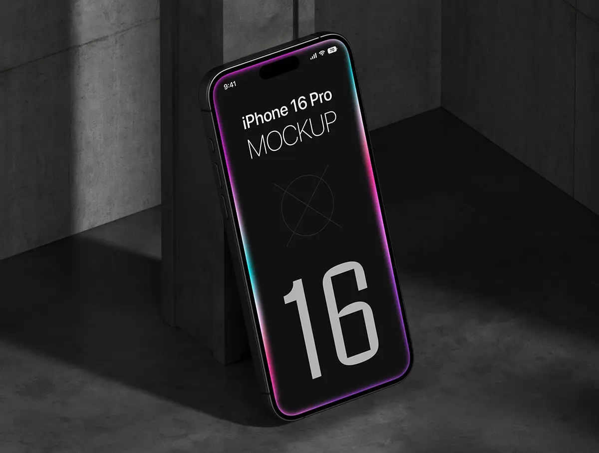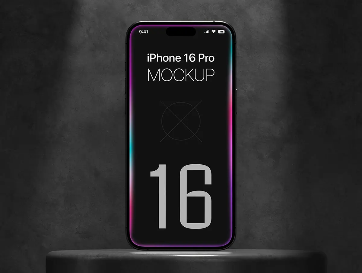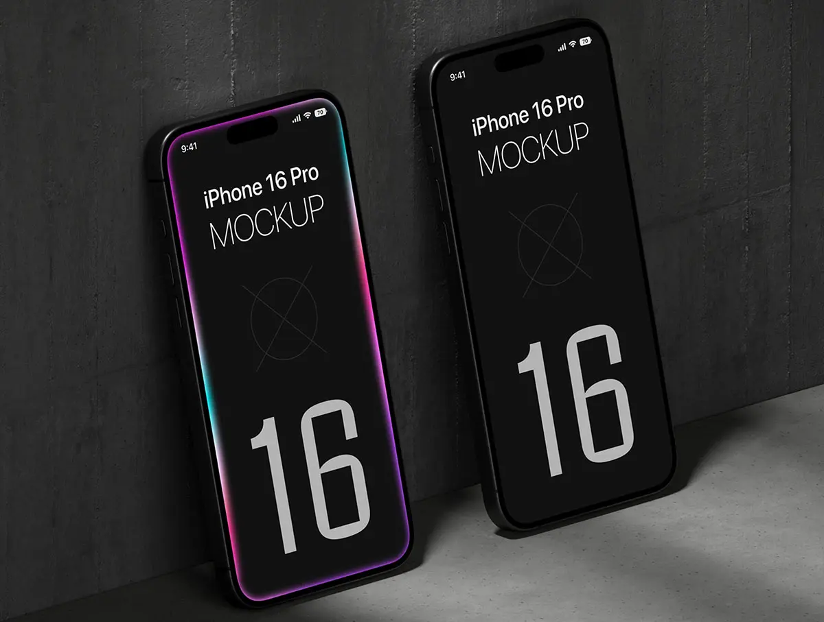 20 iPhone 16 Pro Mockups Vol.01 20款工业风 iPhone 16 Pro 手机广告App界面设计贴图ps样机素材展示效果
