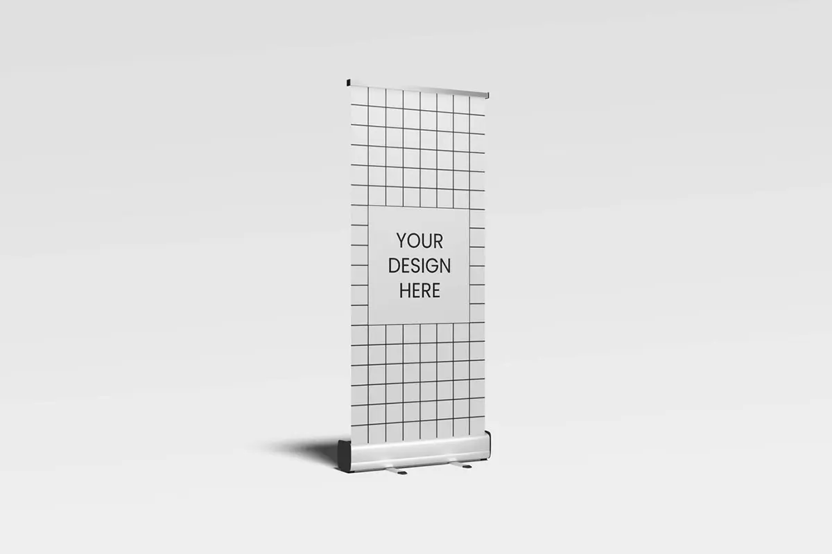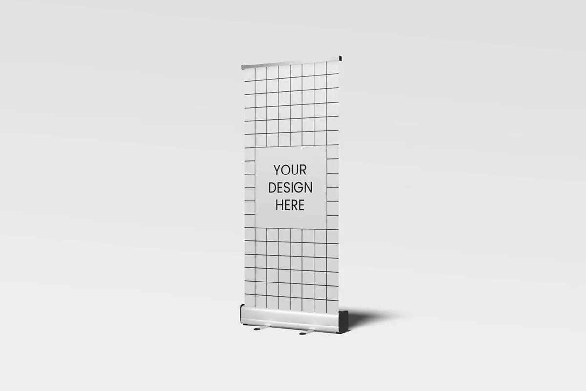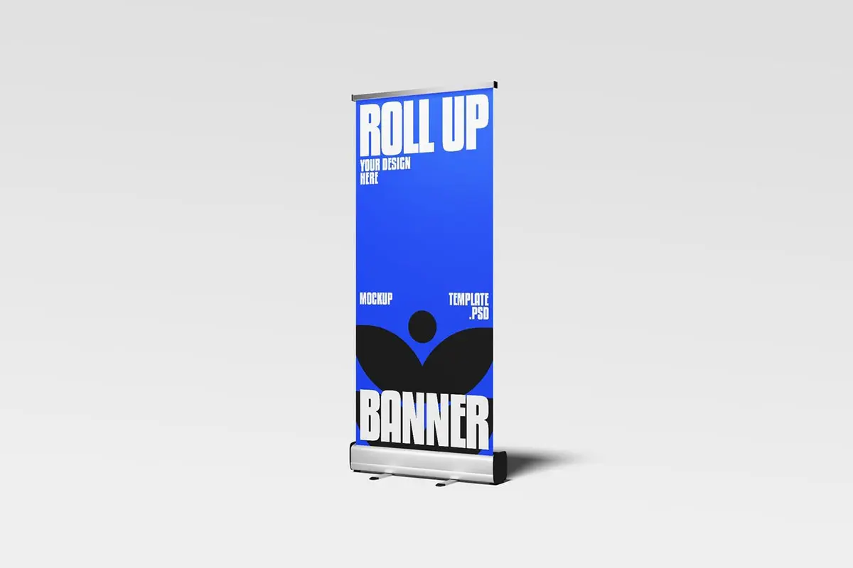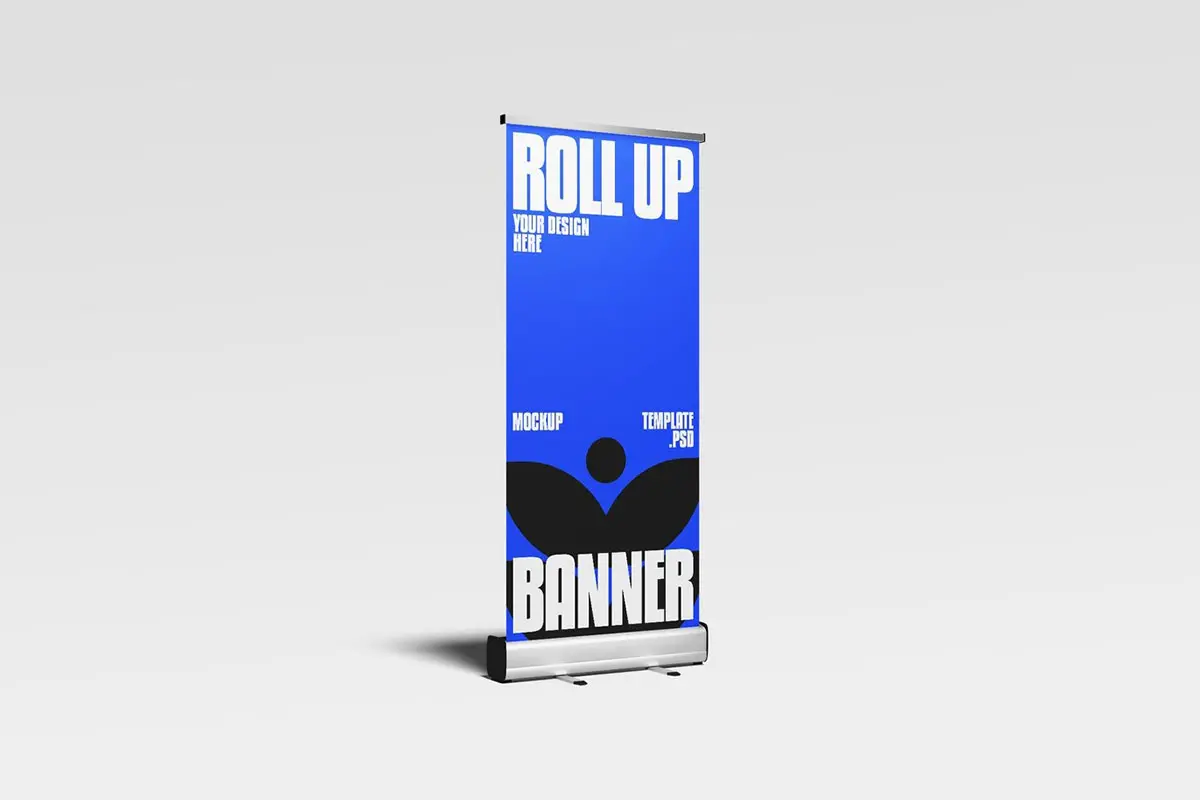Roll Up Banner Mockup 3款铝合金易拉卷横幅广告展架模型展示设计贴图ps样机素材模板