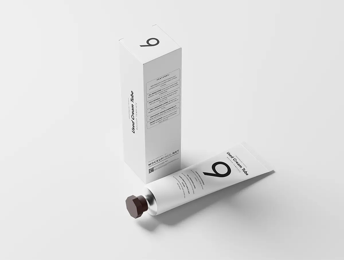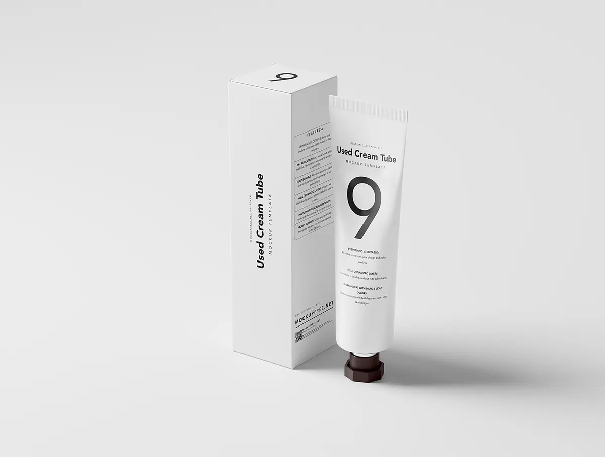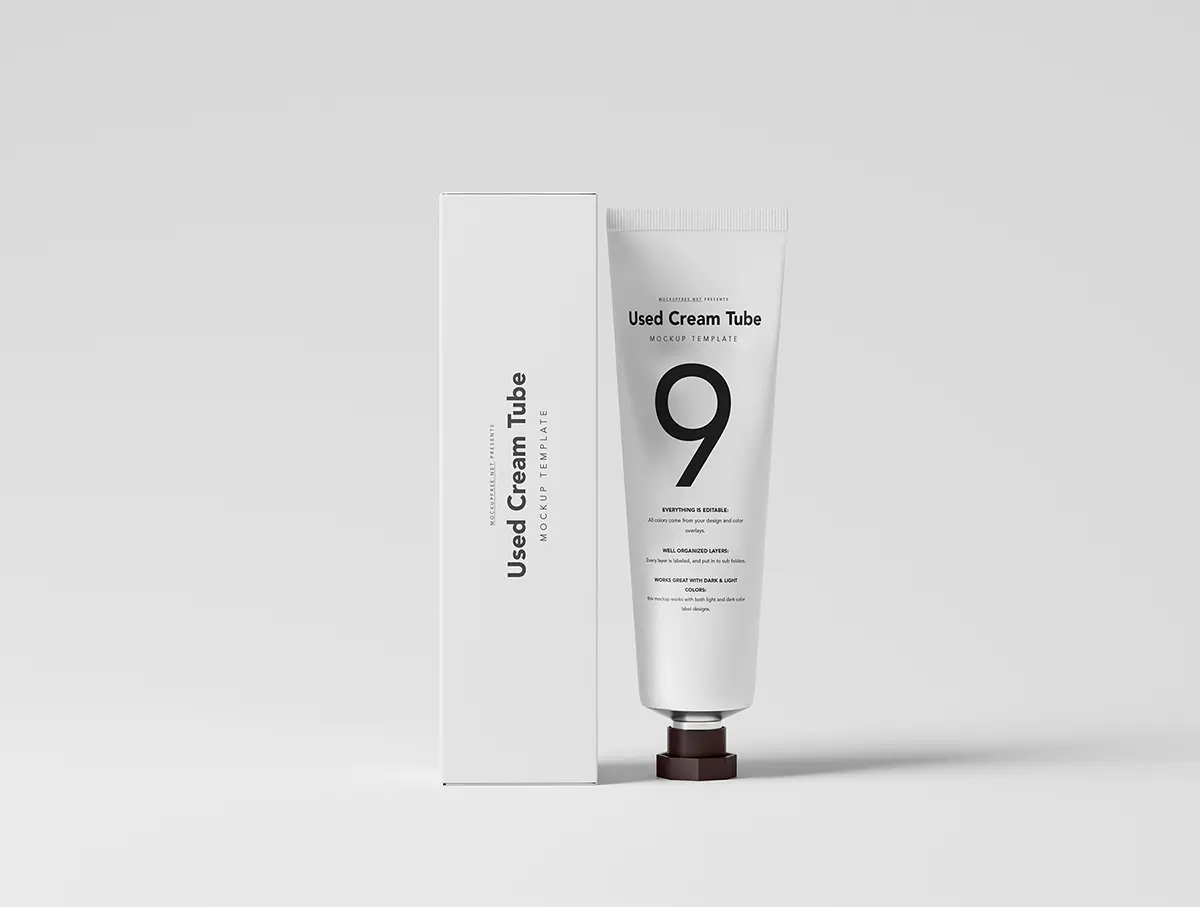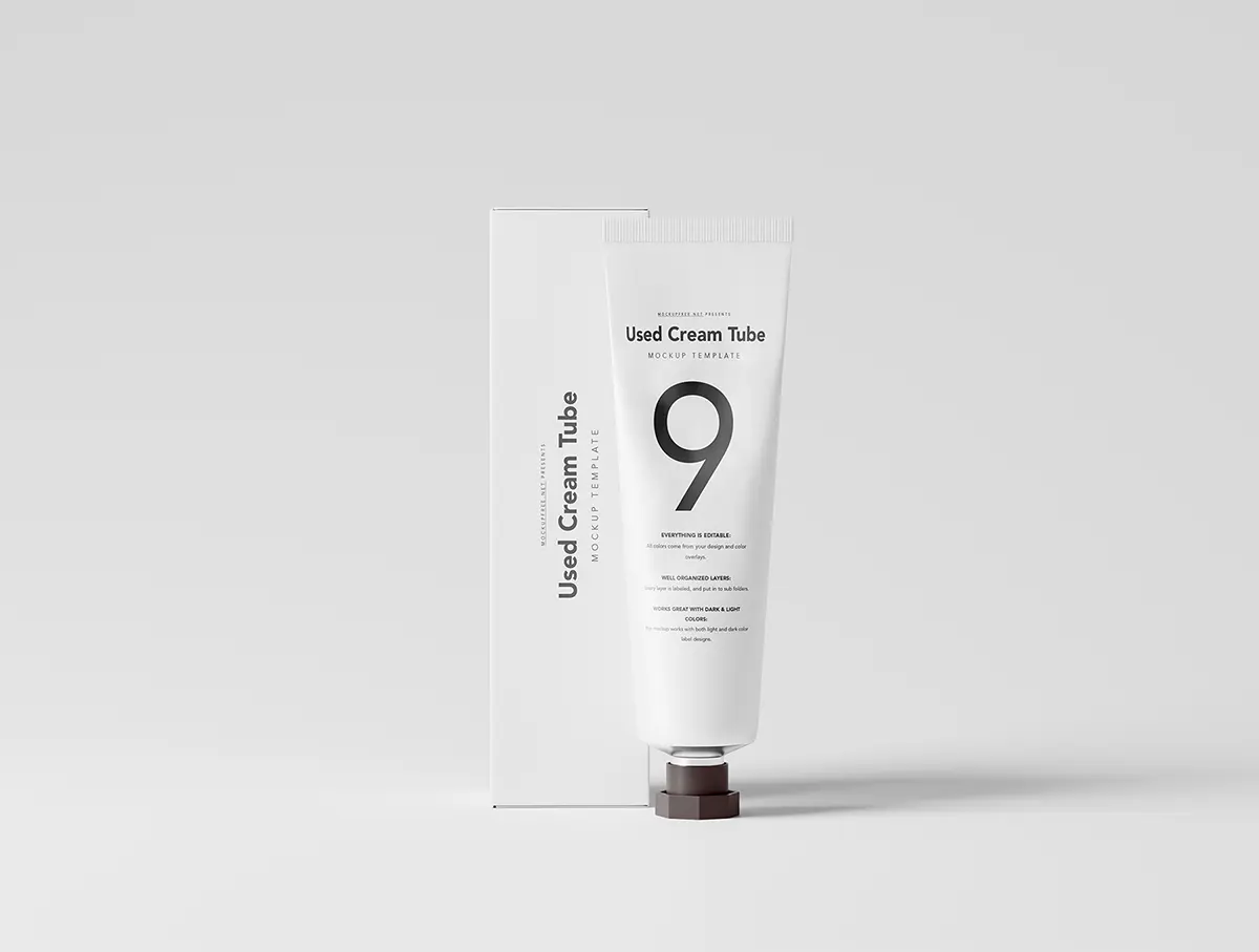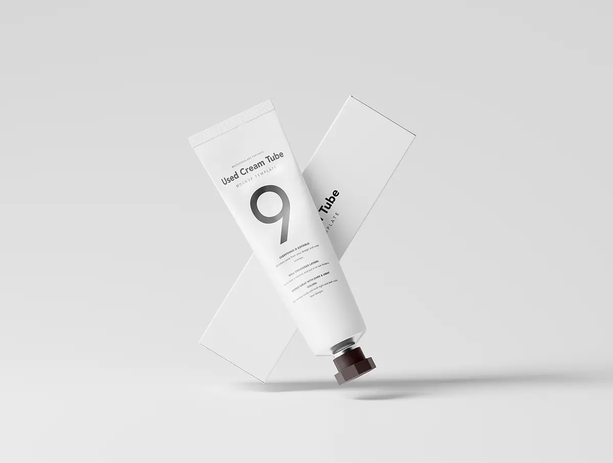 Used Cream Tube Packaging Mockups 美妆护肤化妆品护手霜产品包装设计贴图ps样机素材场景展示效果