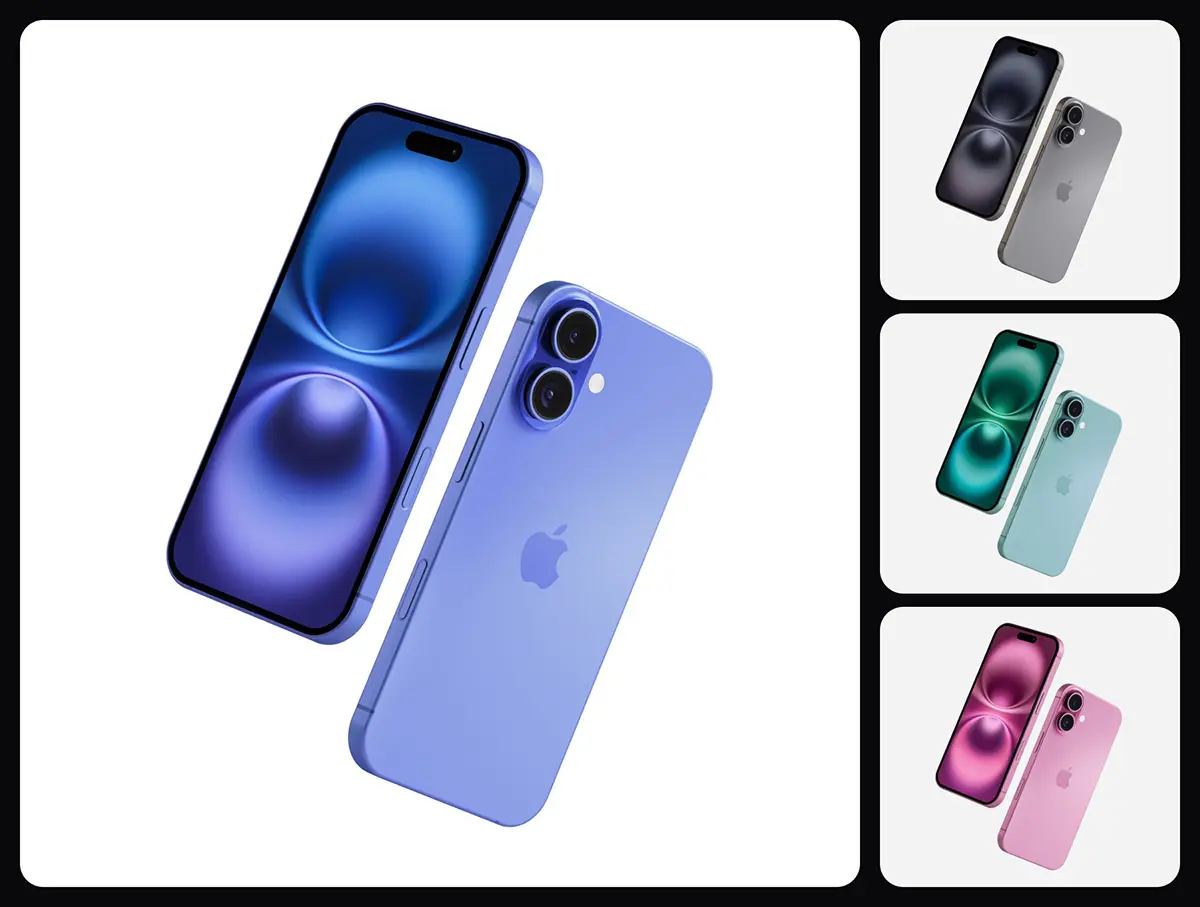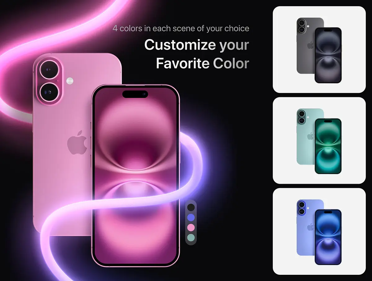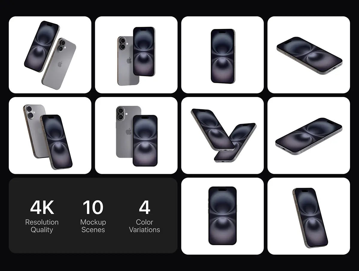 iPhone 16 Mockup – 10 Mockups Scenes 10款多色苹果iPhone 16手机广告ui设计作品展示效果图ps样机素材