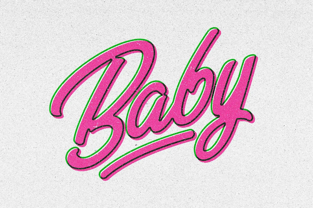 Overprint Halftone Text Effect 卡通蜡笔叠印半调文本字母ps特效样机素材预制模板