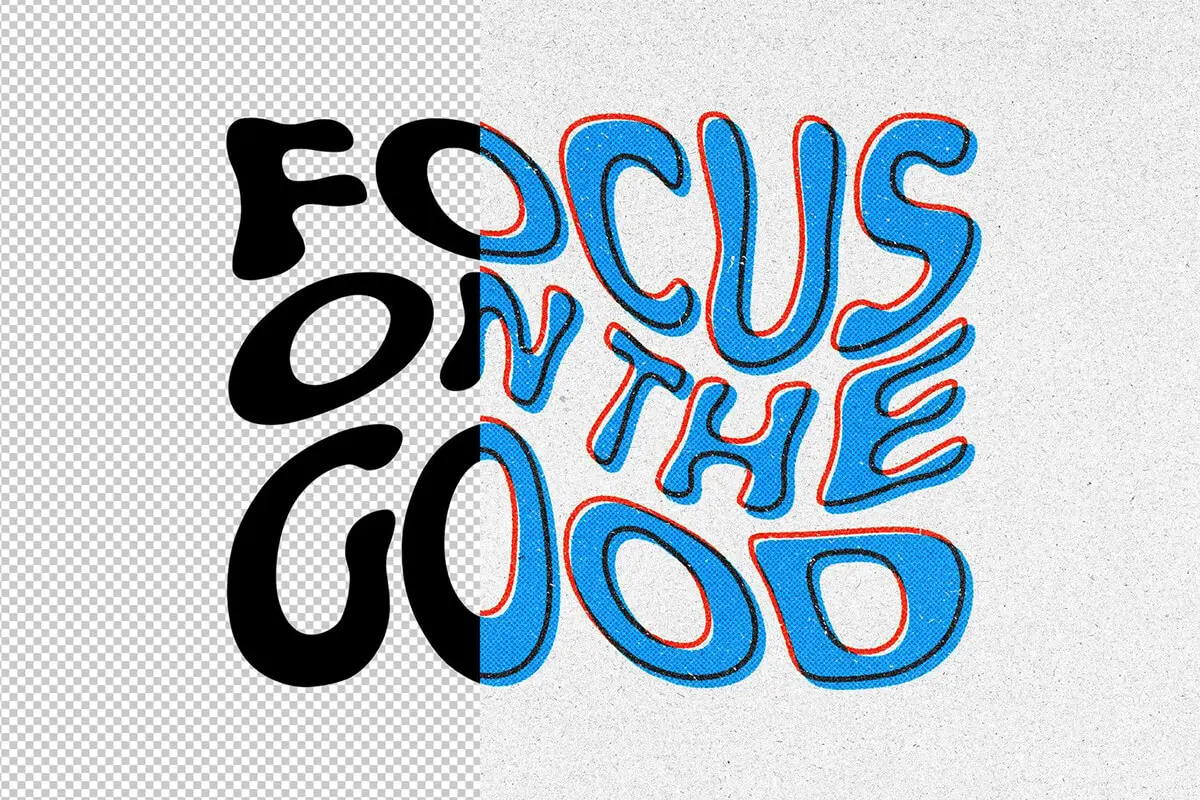 Overprint Halftone Text Effect 卡通蜡笔叠印半调文本字母ps特效样机素材预制模板