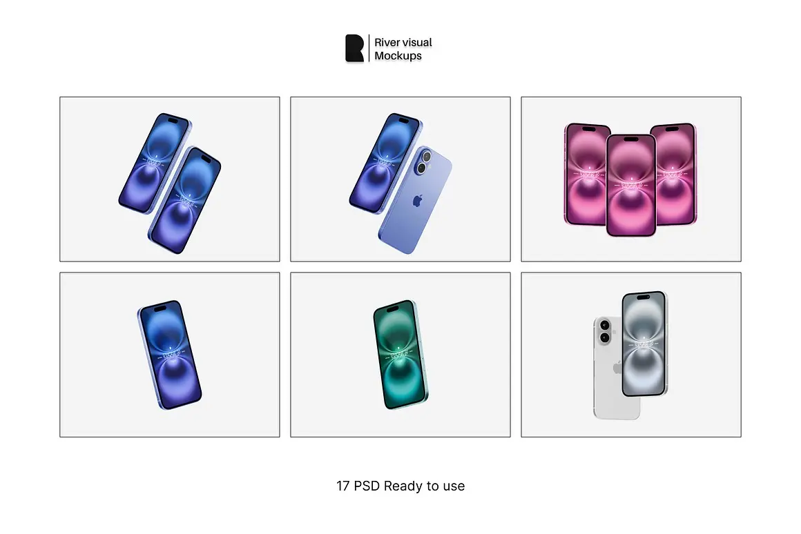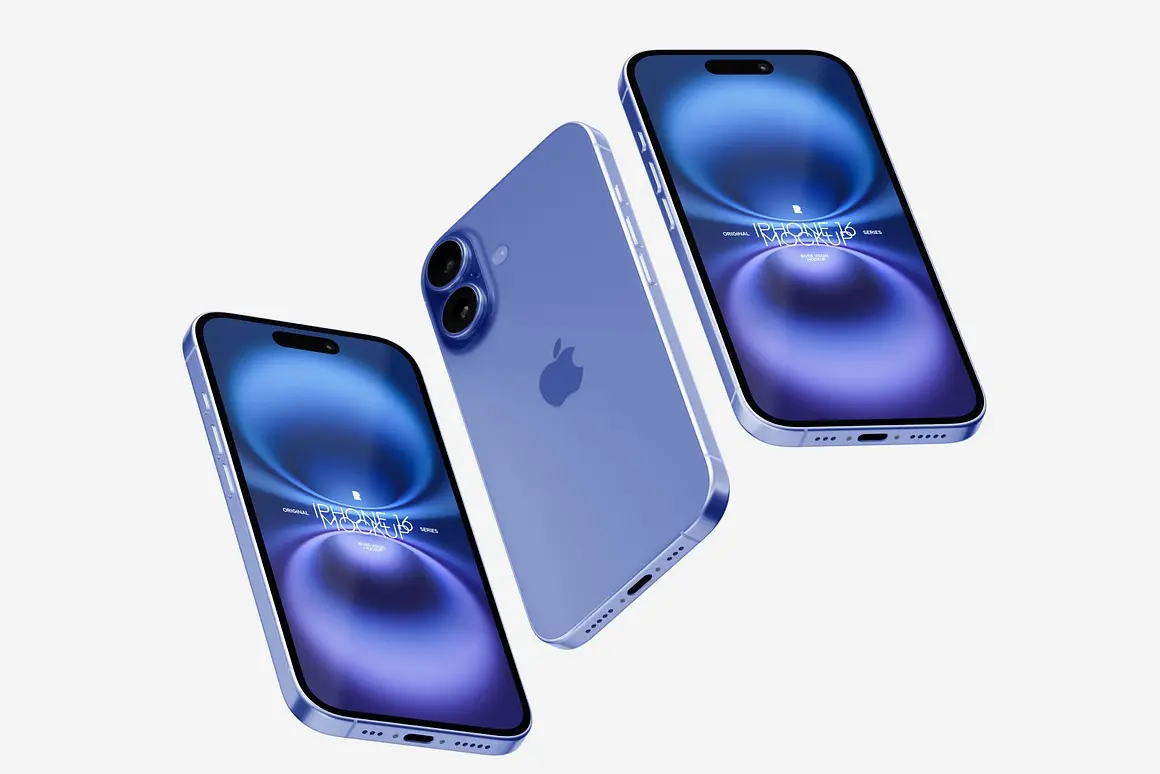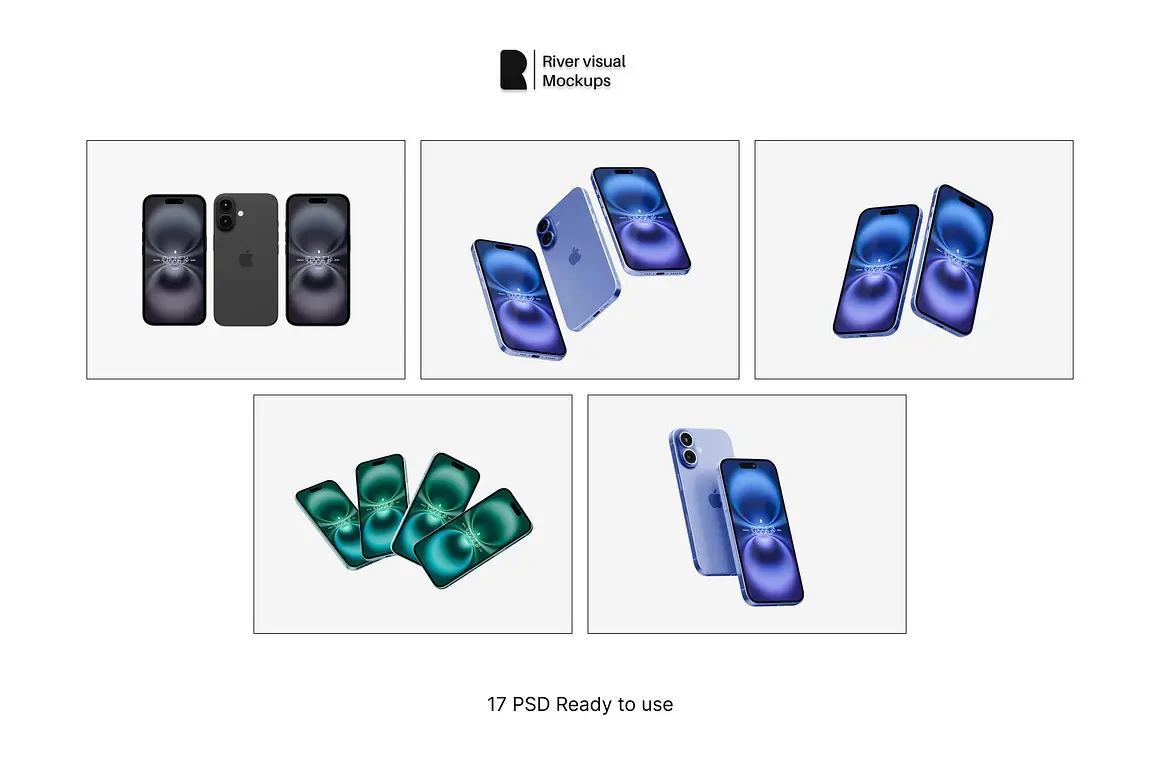 iPhone 16 Mockups 17 PSD 17款苹果iPhone 16手机广告App应用ui设计作品展示效果图ps样机