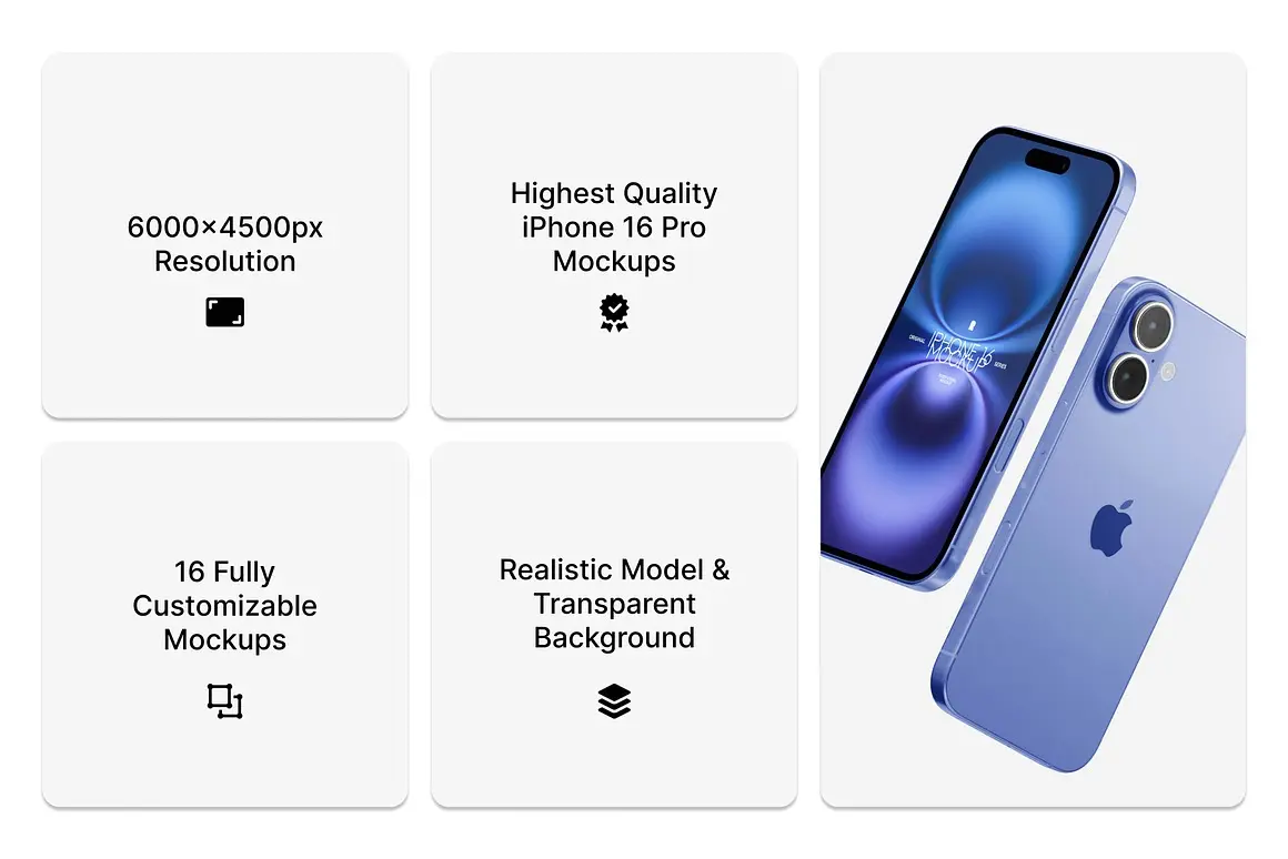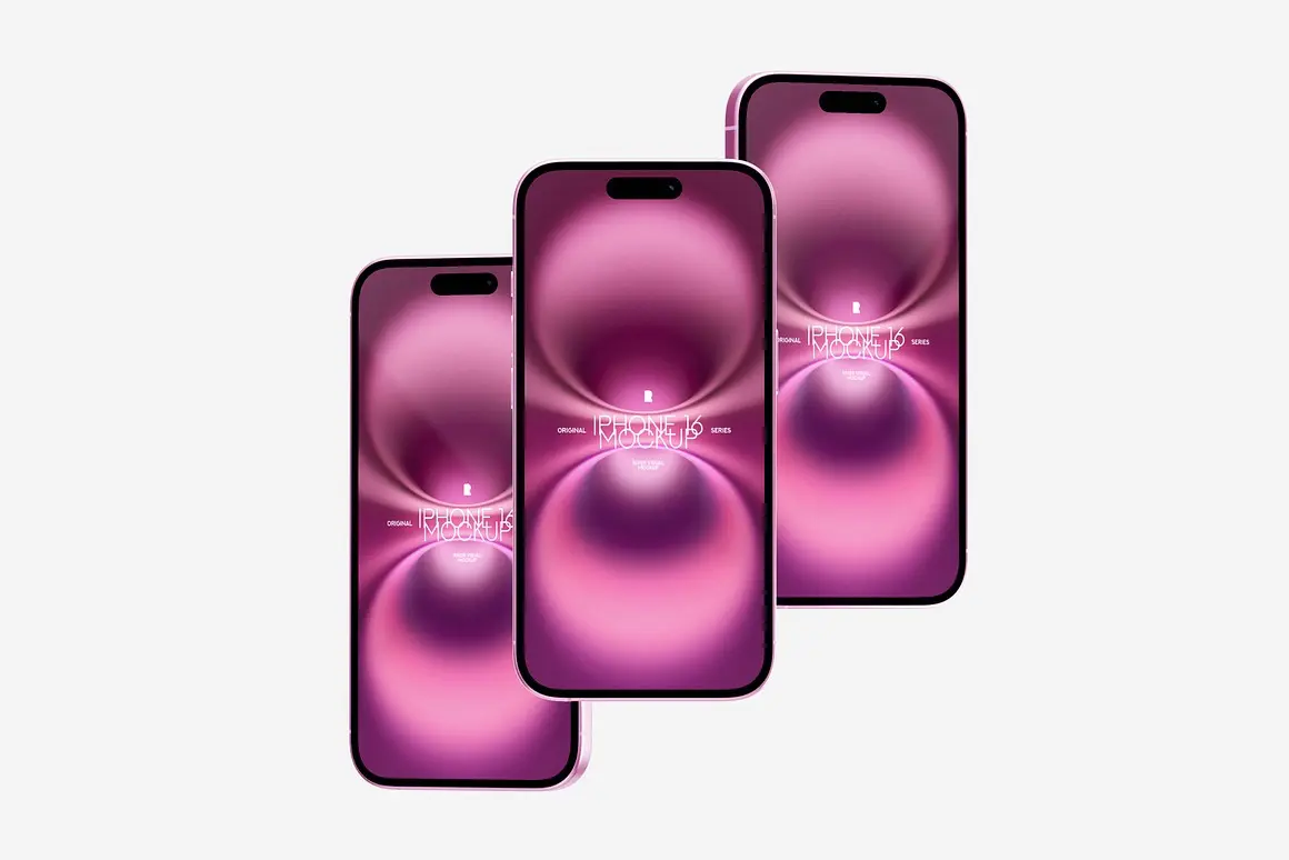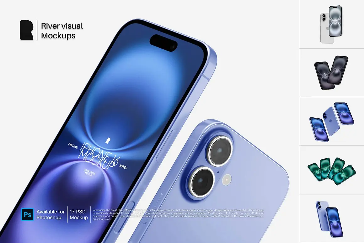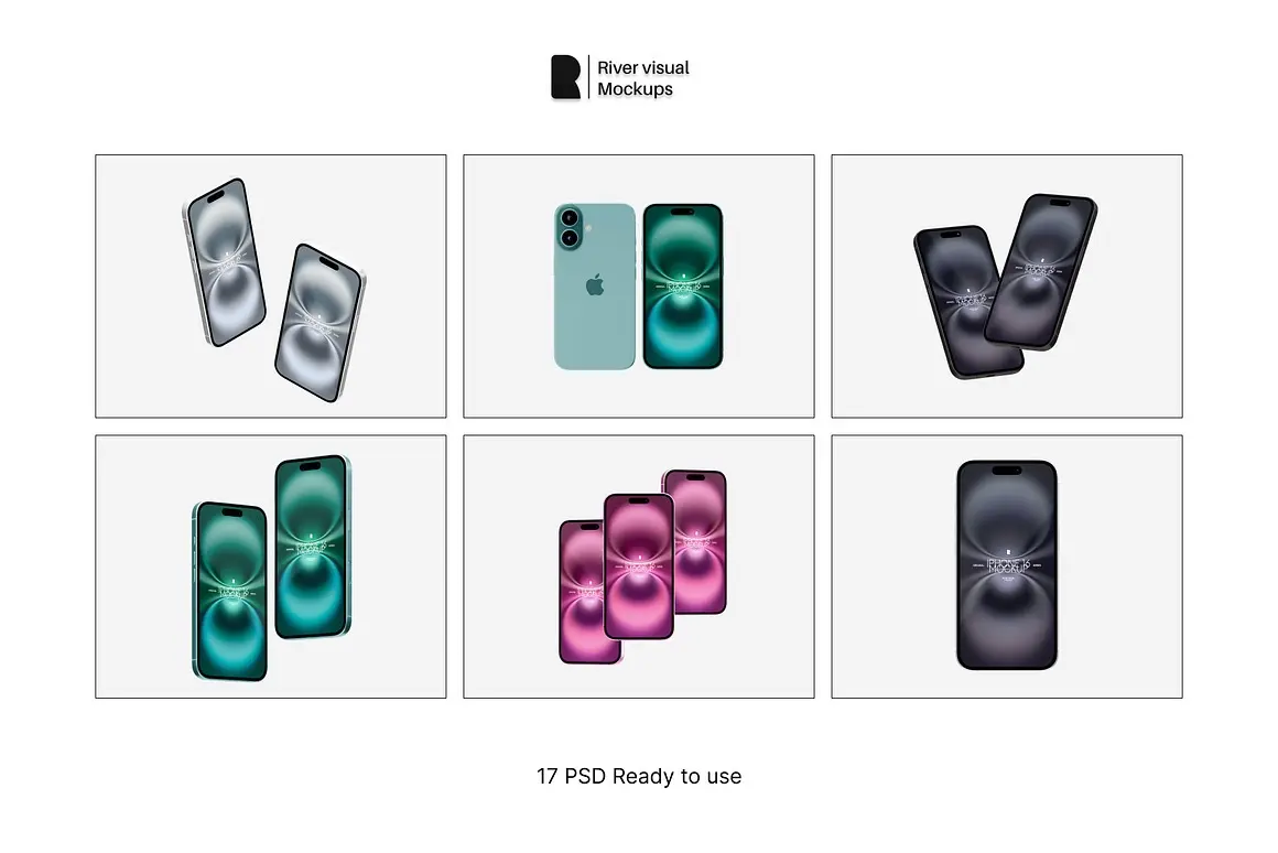 iPhone 16 Mockups 17 PSD 17款苹果iPhone 16手机广告App应用ui设计作品展示效果图ps样机