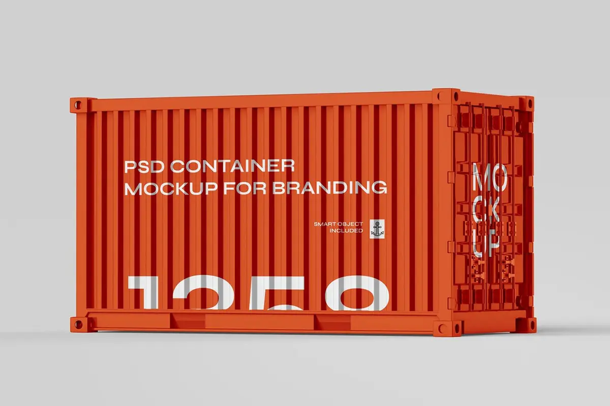 PSD Container Mockup For Branding 货物运输集装箱模型品牌logo标识设计贴图ps样机素材
